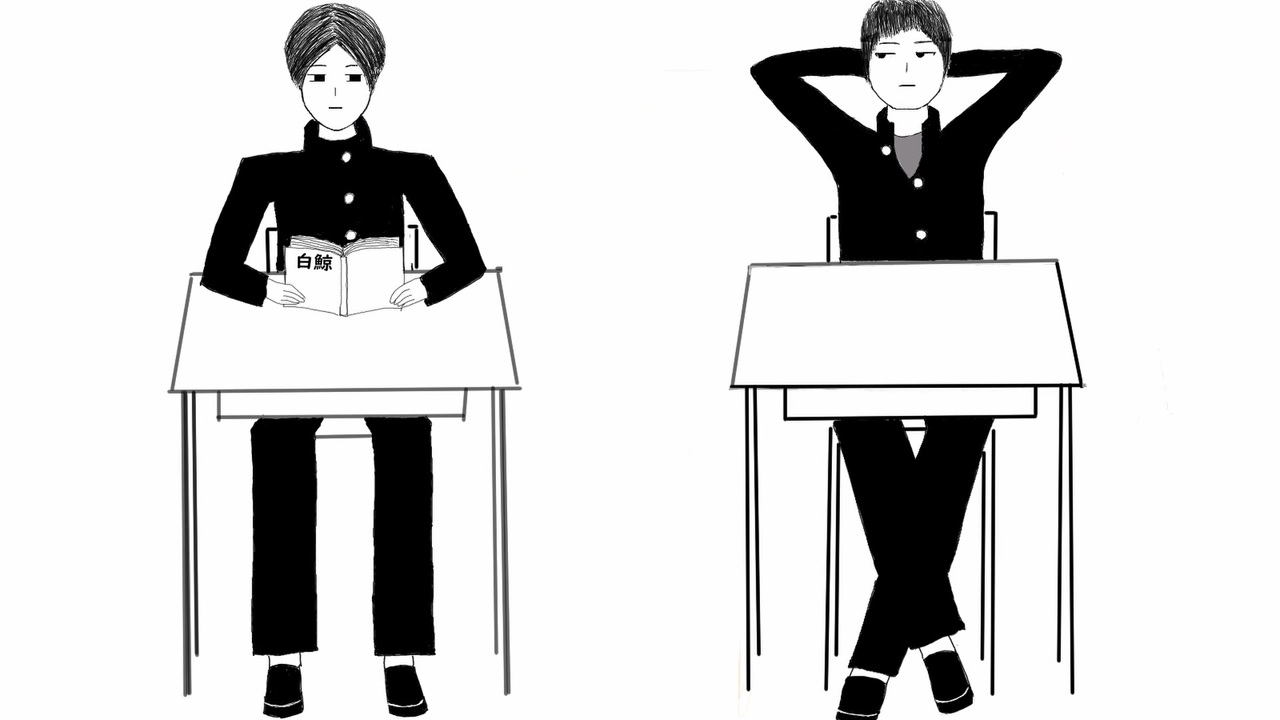 しりとりはとても奥深いゲームだと思います。普通にやっていると終わらないので、全国のしりトラーは時間制限や分野制限などの縛りを設け、さらにそこから特定の文字が語尾となる言葉を連発して相手を追い詰めたりするわけですが、それにはかなりの語彙力が求められます。熟練のしりトラー同士が戦いを繰り広げる様は、まさに侍の真剣勝負。日本語の武芸です。刀は言葉へと姿を変え、現代人に息づいているのかもしれません。<br>今回は田中君がなぜか一方的に「ん」縛りでしりとりを繰り広げましたが、本来決まり手である「ん」からあれだけの言葉を繰り出せる様子から、田中君はエースしりトラーとしての素質があるようです。<br>一方佐藤君はしりとりが苦手ということですが、間髪入れずに「ん」で終わる言葉を繰り出すことから、彼もただ者ではありません。武芸の達人が戦いを避けるように、彼もまた、無益な争いを避けているのかもしれませんね。<br><br>話/絵/声 ‐ 江戸饂飩<br><br>使用素材<br>Otologic(<a href="https://otologic.jp/free/license.html)" target="_blank" rel="noopener nofollow">https://otologic.jp/free/license.html)</a> 様<br>- 04:39 チャイム 学校02 (<a href="https://otologic.jp/free/se/school_bell01.html)" target="_blank" rel="noopener nofollow">https://otologic.jp/free/se/school_bell01.html)</a><br><br>使用ツール<br>音声編集ソフト ‐ Audacity<br>ペイントソフト - Krita<br>動画編集ソフト - DaVinci Resolve