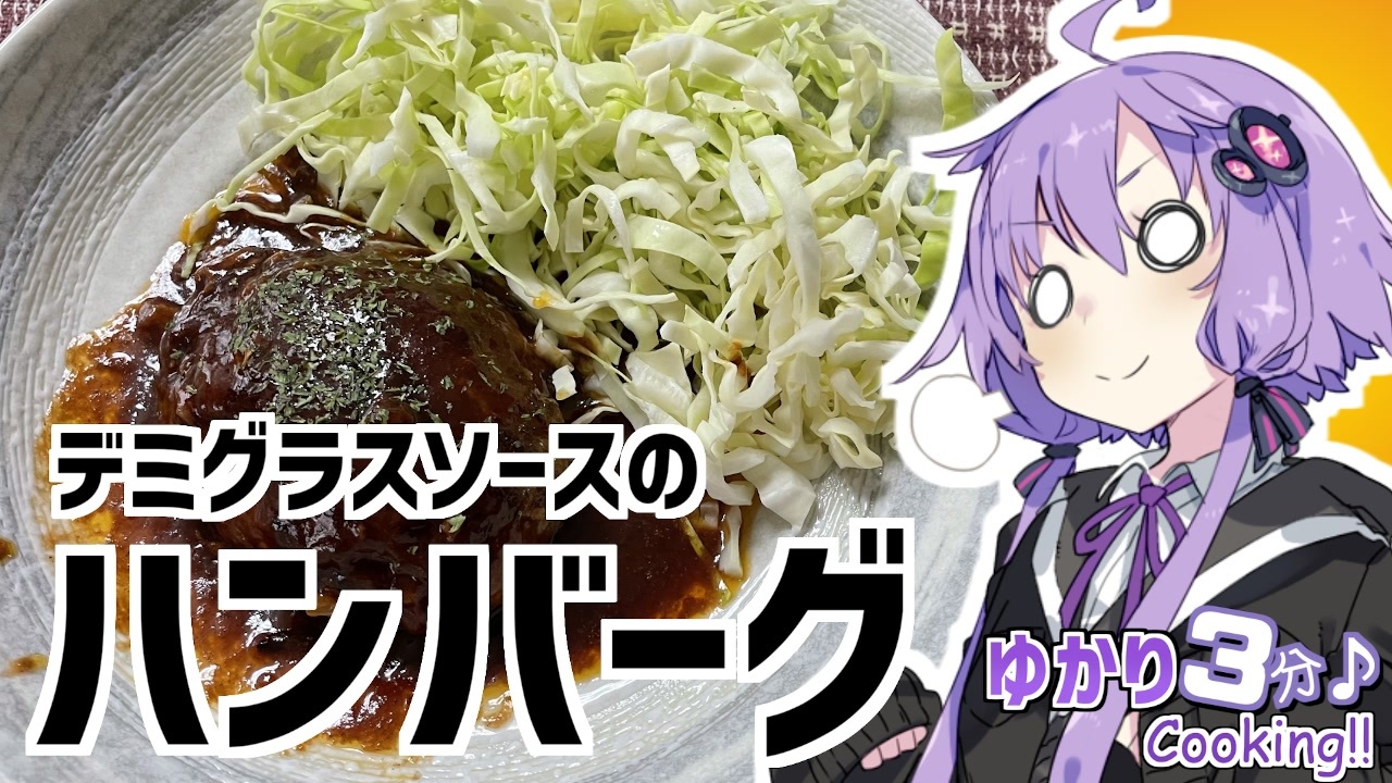 結月ゆかりを使用した料理動画です<br><br>デミグラスソースハンバーグを簡単レシピで作りました!<br>ちょっち塩っ辛いね<br><br>本格派と簡単派の違いは『いいね!』を押して確認してくれよな!<br><br>今回使用した材料<br>合挽:200g タマネギ:半分<br>卵:1個 バター:10g×2<br>パン粉:10g 塩コショウ:少々<br>パセリ:少々<br><デミグラスソース><br>ソース:大さじ3 赤ワイン:大さじ3<br>ケチャップ:大さじ3 しょうゆ:小さじ1<br>砂糖:小さじ1<br><br><br>前回の豚キムチ:<a href="https://www.nicovideo.jp/watch/sm38760063" class="watch">sm38760063</a><br>ずーっと前に作ったグレイビーソースのハンバーグ:<a href="https://www.nicovideo.jp/watch/sm37947973" class="watch">sm37947973</a><br>お久しぶりのJK旅新作(旅行に行ったとは言ってない):<a href="https://www.nicovideo.jp/watch/sm38726550" class="watch">sm38726550</a><br><br>オススメのボイロ劇場<br>茜ちゃんと葵ちゃんの現代怪異占い:<a href="https://www.nicovideo.jp/watch/sm38263500" class="watch">sm38263500</a><br><br>ツイッター:<a href="https://twitter.com/mrt89244817" target="_blank" rel="noopener nofollow">https://twitter.com/mrt89244817</a>