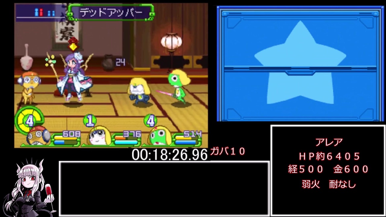 マイナーゲーム3作品目なので初投稿です<br>予想以上にオープニングが長かったのでイベントはまた続きの最後に<br>団子兄貴、もちおじ兄貴、柳野 守利兄貴、れうすき兄貴、ゲスト兄貴、間接兄貴、inu兄貴、からあげライス兄貴、flomox兄貴広告ありがとうございます<br><br>使用機器<br>3ds 偽トロ<br><br>計測開始:はじめからを選択したとき<br>計測終了:ケロロ軍曹の最後のセリフが終わり暗転したとき<br><br>レギュレーション難易度やさしい固定 禁止事項難易度の変更のみ<br><br>Twitter:<a href="https://twitter.com/book97505473" target="_blank" rel="noopener nofollow">https://twitter.com/book97505473</a><br><br>youtube:<a href="https://www.youtube.com/channel/UCxRPTxaAswS4ivpWZ3UNuvg?view_as=subscriber" target="_blank" rel="noopener nofollow">https://www.youtube.com/channel/UCxRPTxaAswS4ivpWZ3UNuvg?view_as=subscriber</a><br><br>挿絵を描いていただいた絵師さん:<br><a href="https://twitter.com/Hani_wahanihani" target="_blank" rel="noopener nofollow">https://twitter.com/Hani_wahanihani</a><br><br>無編集版:<a href="https://www.youtube.com/watch?v=pQzQPfrs-MA" target="_blank" rel="noopener nofollow">https://www.youtube.com/watch?v=pQzQPfrs-MA</a><br><br>次回:<a href="https://www.nicovideo.jp/watch/sm38810403" target="_blank" rel="noopener nofollow">https://www.nicovideo.jp/watch/sm38810403</a>
