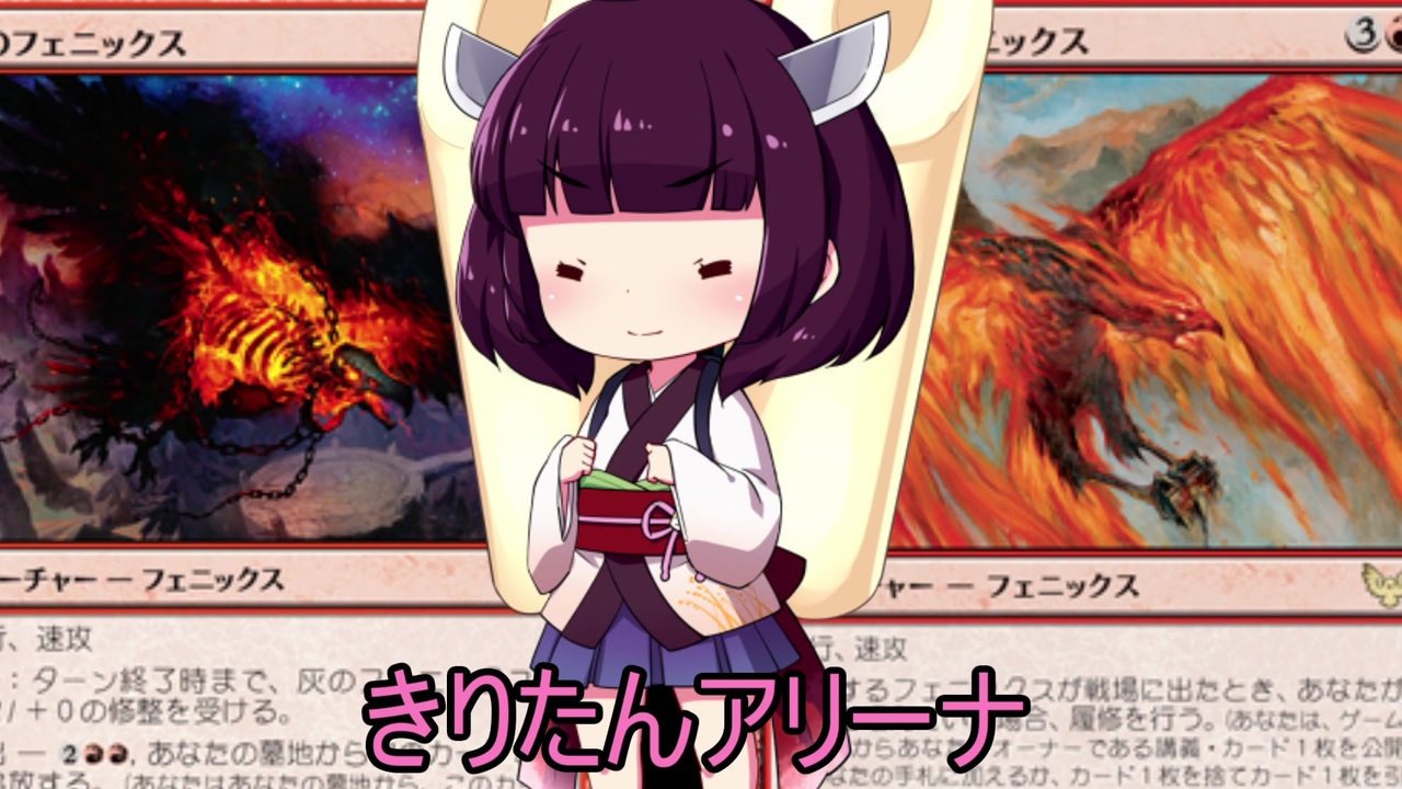 ちょっと前の動画に『説明文に検索用のデッキ名表記が欲しい』ってコメがあったので今回から載せます。因みに前回投稿前にあったコメントで、前回からやるつもりが投稿時普通に忘れてたのは秘密だ(・ω<) てへぺろ<br><br>【使用デッキ】<br>赤白ダブルフェニックスデッキ<br> <br>【アリーナ公式】<br><a href="https://magic.wizards.com/en/mtgarena" target="_blank" rel="noopener nofollow">https://magic.wizards.com/en/mtgarena</a><br><span style="color: #000000; font-size: 14px;">【配信】(昼:13~17 夜:20~22)</span><br><a href="https://www.twitch.tv/kiritanex" target="_blank" rel="noopener nofollow">https://www.twitch.tv/kiritanex</a><br>【YouTube・連絡先・Twitter】<br>マイリストに表記<br><br><span style="color: #000000; font-size: 14px;">【前回の広告者様動画】</span><br>benz様:「ノーローグノーライフ」<a href="https://www.nicovideo.jp/mylist/68541419" target="_blank" rel="noopener">mylist/68541419</a><br>AHE様:「MTG一人対戦」<a href="https://www.nicovideo.jp/mylist/54219502" target="_blank" rel="noopener">mylist/54219502</a><br>ソンチョー様「4人でMTGAやりましょ!」<a href="https://www.nicovideo.jp/mylist/64931307" target="_blank" rel="noopener">mylist/64931307</a><br>林原めぐみ好きのおっちゃん様:「ゆかマキMTG実況」<a href="https://www.nicovideo.jp/series/155646" target="_blank" rel="noopener">series/155646</a><br>Luin様:「PWあかりのアリーナ対戦録」<a href="https://www.nicovideo.jp/mylist/66293742" target="_blank" rel="noopener">mylist/66293742</a><br>みょーん様:「カードゲームで遊びたい茜ちゃん」<a href="https://www.nicovideo.jp/series/221732" target="_blank" rel="noopener">series/221732</a><br>稲尾様:「とにかくタフネスで殴り抜ける。」<a href="https://www.nicovideo.jp/mylist/66067276" target="_blank" rel="noopener">mylist/66067276</a><br>TKY様:「弦巻 The Gathering」<a href="https://www.nicovideo.jp/series/173355" target="_blank" rel="noopener">series/173355</a><br>白ウイスキー様:「アリーナのアは茜ちゃんのア」<a href="https://www.nicovideo.jp/mylist/69289902" target="_blank" rel="noopener">mylist/69289902</a><br>TEPIA様:「紲星あかりはライブラリーをめくりたい」<a href="https://www.nicovideo.jp/watch/sm35229450" class="watch">sm35229450</a><br>ラーメン王様:「結月ゆかりのミラクル解説ラジオ」<a href="https://www.nicovideo.jp/mylist/62359037" target="_blank" rel="noopener">mylist/62359037</a><br>レオヴォルド愛好家様:「レオヴォルド好きが□MTGアリーナで遊ぶ」<a href="https://www.nicovideo.jp/watch/sm34155595" class="watch">sm34155595</a><br>BlueSky様:「【MTGA】ドラフトで遊ぶ」<a href="https://www.nicovideo.jp/mylist/67869251" target="_blank" rel="noopener">mylist/67869251</a><br>らんぽす様:「ティミーなあかりちゃんは遊びたい」<a href="https://www.nicovideo.jp/series/143123" target="_blank" rel="noopener">series/143123</a><br>ものまねうさぎ様:「初心者でもモダンがしたい!」<a href="https://www.nicovideo.jp/watch/sm32508742" class="watch">sm32508742</a><br>Toko様:「結月ゆかりのフレーバー書庫」<a href="https://www.nicovideo.jp/series/198115" target="_blank" rel="noopener">series/198115</a><br><br><a href="https://www.nicovideo.jp/mylist/63851869" target="_blank" rel="noopener">mylist/63851869</a> 前:<a href="https://www.nicovideo.jp/watch/sm38749989" class="watch">sm38749989</a> 次:<a href="https://www.nicovideo.jp/watch/sm38841443" class="watch">sm38841443</a><br>