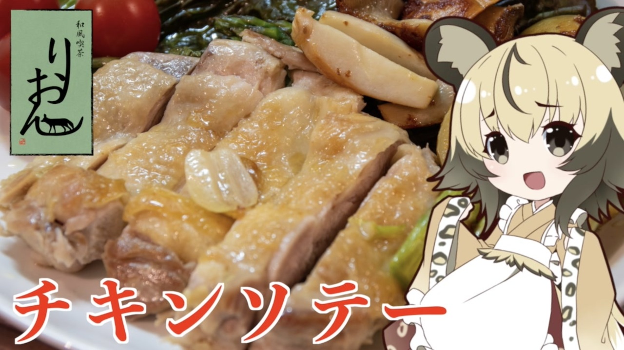 今回は「チキンソテー」を作ります。<br>パリパリの皮のチキンをいつも再現できればいいですよね。<br>見つけた調理法を試してみます。<br><br>■材料<br>・鶏もも肉 2枚<br>・ニンニク 1かけら<br>・塩 お好みの量<br>・オリーブオイル 大さじ4<br><br>付け合わせ<br>・アスパラ お好みの量<br>・エリンギ お好みの量<br>・新じゃがいも お好みの量<br><br>■所要時間<br>作業時間:15分程度<br><br>あいくろう様:<a href="https://www.nicovideo.jp/user/96034785" target="_blank" rel="noopener">user/96034785</a><br>支援絵:<a href="https://seiga.nicovideo.jp/seiga/im10745918" target="_blank" rel="noopener">im10745918</a><br><br>youtube:<a href="https://youtu.be/A0jCE1iIxls" target="_blank" rel="noopener nofollow">https://youtu.be/A0jCE1iIxls</a><br />twitter:@lycaon_kitchen<br><br>りおんの和風喫茶:<a href="https://www.nicovideo.jp/series/77190" target="_blank" rel="noopener">series/77190</a><br>おつかれごはん:<a href="https://www.nicovideo.jp/series/155690" target="_blank" rel="noopener">series/155690</a><br>手作り和菓子でちょっとひとやすみしませんか?:<a href="https://www.nicovideo.jp/series/155691" target="_blank" rel="noopener">series/155691</a><br><br><span style="color: rgba(0, 0, 0, 0.87);">立ち絵:</span>星華 彩二魔 様<br><span style="color: rgba(0, 0, 0, 0.87);">イラスト:いらすとや、AWD kitchen<br>音源:DOVA-SYNDROME、ポケットサウンド<br>音声:VOICEROID2 </span>紲星あかり、東北イタコ + exVOICE