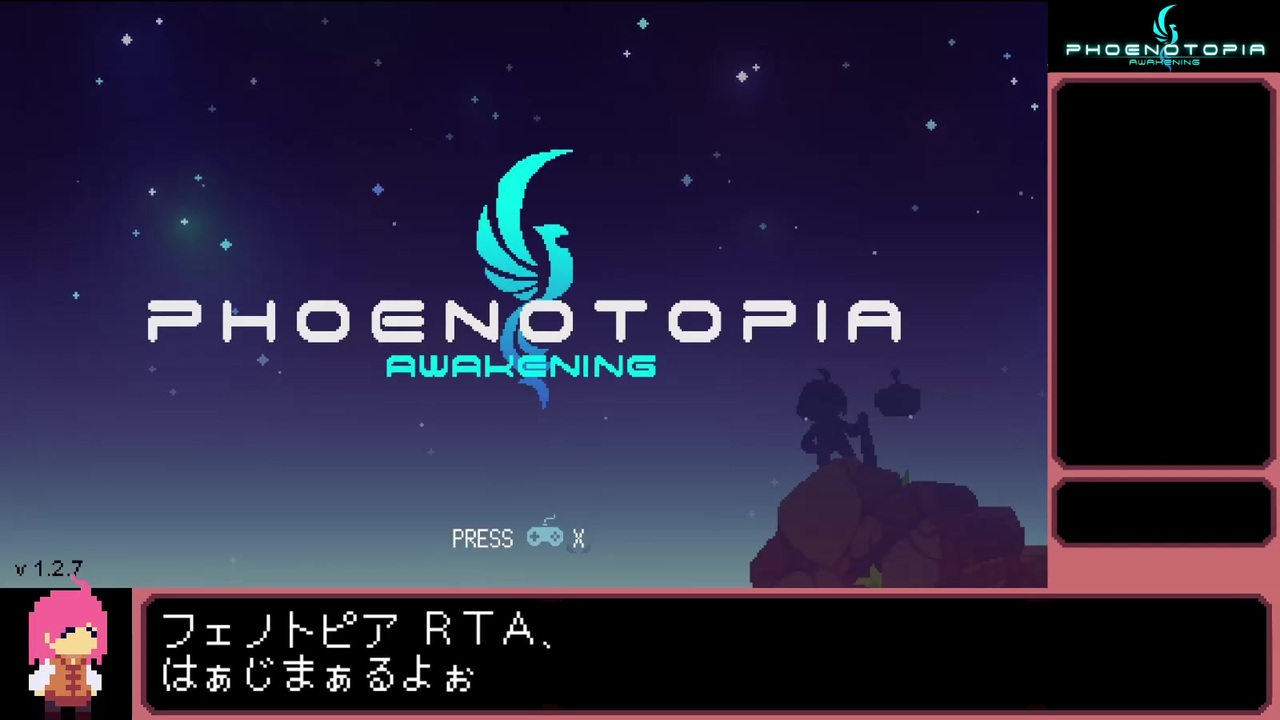 パート2→<a href="https://www.nicovideo.jp/watch/sm38804860" class="watch">sm38804860</a><br><br>動画初投稿です!優しくしてね...<br><br>2022/4/17<br><span style="color: #ff0000; font-size: 16px;"><strong>フェノトピアの100%RTAに懸賞金がかけられました!(~$1000)<br>みんなやろうね!!</strong></span><span style="color: #ff0000; font-size: 10px;"><strong>(なお現在の世界一位は5時間 00分 38秒)</strong></span><br>くわしくはこちら↓<br><a href="https://www.speedrun.com/tournaments_and_races/thread/lmdl4" target="_blank" rel="noopener nofollow">https://www.speedrun.com/tournaments_and_races/thread/lmdl4</a><br><br><span style="color: #262626; font-size: 16px;"><strong>PS Storeで配信開始しました!買ってね!!(2021/7/2)</strong></span><br><a href="https://store.playstation.com/ja-jp/product/JP1178-CUSA26867_00-0404947008980030" target="_blank" rel="noopener nofollow">https://store.playstation.com/ja-jp/product/JP1178-CUSA26867_00-0404947008980030</a><br><br><br>Phoenotopia(フェノトピア): AwakeningというゲームのRTA「旧」世界記録の動画です。<br>とってもとってもいいゲームなのですが、知名度が引くほど低いので、紹介が最初にあります。<br>RTAは正直おまけなので、紹介部分でこのゲームを少しでも知っていただければとてもうれしいです。<br>switchとsteamで2000円で買えます。よろしくお願いいたします。<br><br>RTA部分はかなりガチ向け解説ですが、実績取得の参考にしてみてください!<br>追記!RTAをやるならsteam版一択なのでこれから購入される方は気を付けてください。<br><br>steam<br><a href="https://store.steampowered.com/app/1436590/Phoenotopia_Awakening/?l=japanese" target="_blank" rel="noopener nofollow">https://store.steampowered.com/app/1436590/Phoenotopia_Awakening/?l=japanese</a><br>switch<br><a href="https://store-jp.nintendo.com/list/software/70010000035217.html" target="_blank" rel="noopener nofollow">https://store-jp.nintendo.com/list/software/70010000035217.html</a><br><br>今の世界記録や再走は下記にあるので、最新チャートはこちらで確認してください。<br>↓生放送<br><a href="https://www.twitch.tv/waon255" target="_blank" rel="noopener nofollow">https://www.twitch.tv/waon255</a><br><br><strong>多くの方に広告いただきまして、本当にありがとうございます!!</strong><br>