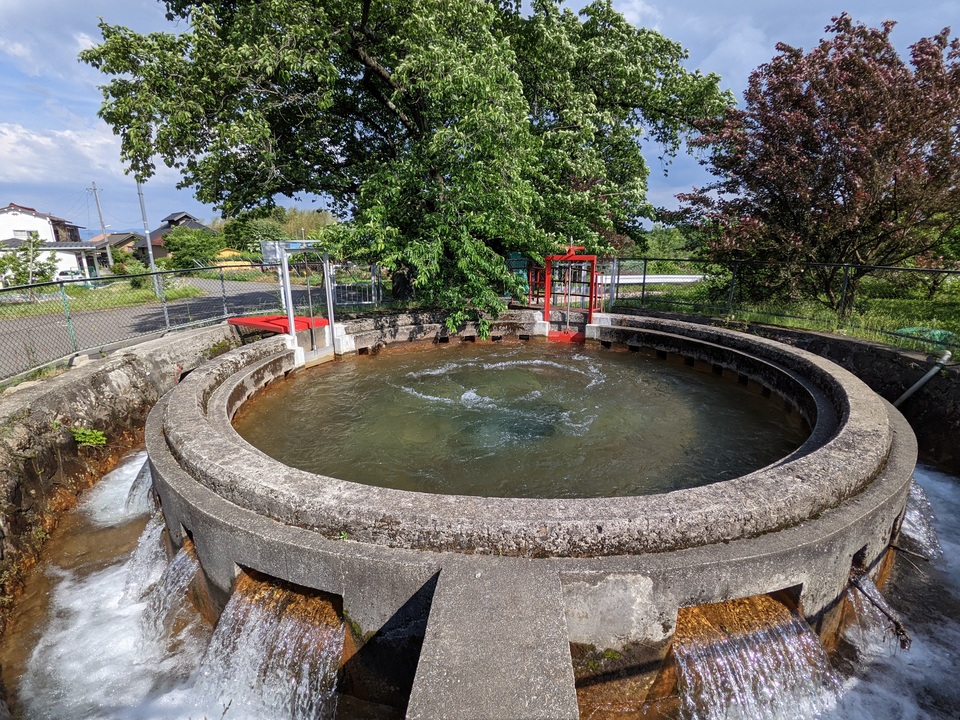 福島県福島市大笹生にある栗本堰の円筒分水工です<br>