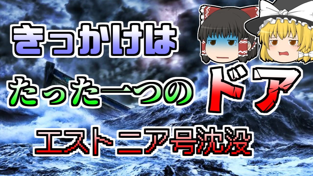 今回は『エストニア号沈没』についての紹介です。<br>バルト海を航行中、乗員乗客約1000名を乗せたフェリーエストニア号は、海水の浸入により、沈没してしまいました。<br>進入のキッカケは、船首のドアが開けっ放しになっていたこと。<br>警報が鳴るのも遅かった上、時間は午前二時。乗客たちは突然傾いたベッドに飛び起きたそうです。<br>この沈没がキッカケで、世界中の船舶の安全設計に影響を及ぼしました。<br><br><br>引用<br>Wikipedia<br><a href="https://ishort.ink/zNMu" target="_blank" rel="noopener nofollow">https://ishort.ink/zNMu</a><br>BGM<br>フリーBGM『海底の神殿』 by MAKOOTO<br><a href="https://dova-s.jp/bgm/play7690.html" target="_blank" rel="noopener nofollow">https://dova-s.jp/bgm/play7690.html</a><br />※この動画は過去の事件を知り、現在でも同じことが発生する危険性を再認識、関与しないように促すための動画であり、視聴者を扇動、動揺を誘うためのコンテンツではありません。<br><br>ご要望にお応えして、メンバーシップの開設を行いました。<br>下記URLからも登録可能ですので、ご興味がある方は是非ご参加ください。<br><a href="https://www.youtube.com/channel/UCcT5a1J7XJW7CLYI2RKl4pw/join" target="_blank" rel="noopener nofollow">https://www.youtube.com/channel/UCcT5a1J7XJW7CLYI2RKl4pw/join</a><br><br><br>Twitter<br>→<a href="https://twitter.com/yukkurisurutoko" target="_blank" rel="noopener nofollow">https://twitter.com/yukkurisurutoko</a><br><br>取り急ぎ、簡易的にですがマイリストを作りました。<br>【ゆっくり解説】事故・事件関係紹介リスト <br><a href="https://www.nicovideo.jp/mylist/71034319" target="_blank" rel="noopener nofollow">https://www.nicovideo.jp/mylist/71034319</a><br>【ゆっくり解説】放射線系事故<br><a href="https://www.nicovideo.jp/mylist/71034368" target="_blank" rel="noopener nofollow">https://www.nicovideo.jp/mylist/71034368</a><br>【ゆっくり解説】鉄道系事故・事件関連<br><a href="https://www.nicovideo.jp/mylist/71034379" target="_blank" rel="noopener nofollow">https://www.nicovideo.jp/mylist/71034379</a>