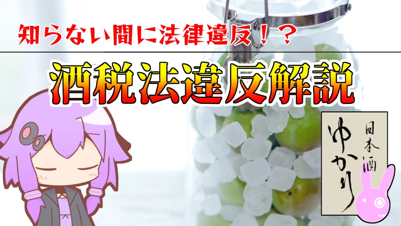 知らずに動画やブログに上げるとマジで税務署から怒られるやつ<br>でも知識さえあれば、面白そうなことができる分野なんですよ<br>(素人解説ゆえ、間違いなどがありましたら指摘してくれると助かります)<br><br>酒税法系動画<br><a href="https://www.nicovideo.jp/watch/sm38641333" class="watch">sm38641333</a> 酒類提供禁止中の居酒屋さん【山本 ストロベリーレッド】<br><a href="https://www.nicovideo.jp/watch/sm38815608" class="watch">sm38815608</a> 絶対に悪いことをしてはいけない酒動画<br><a href="https://www.nicovideo.jp/watch/sm38818924" class="watch">sm38818924</a> 酒税法違反解説<br><br><br>国税庁 お酒についてのQ&A(基本的なことはここに全部書いてます)<br><a href="https://www.nta.go.jp/taxes/sake/qa/01.htm" target="_blank" rel="noopener nofollow">https://www.nta.go.jp/taxes/sake/qa/01.htm</a><br>>基本的なことはここにまとまってます<br>>【自家醸造】のとこ中心に読みましょう<br><br>衆議院国会答弁 酒税法に関する質問主意書<br><a href="https://www.shugiin.go.jp/internet/itdb_shitsumon.nsf/html/shitsumon/166389.htm" target="_blank" rel="noopener nofollow">https://www.shugiin.go.jp/internet/itdb_shitsumon.nsf/html/shitsumon/166389.htm</a><br>>自家醸造酒を振舞うことについての話が乗ってます<br><br>果実酒工房<br><a href="http://www.kajitsushu.net" target="_blank" rel="noopener nofollow">http://www.kajitsushu.net</a><br>>果実酒作りについて非常に詳しい<br>>酒税法についての情報は特にしっかりしてました<br><br><br>動画に入らなかった酒税法違反の話<br>Q.市販の酒を蒸留して消毒用アルコールを作っていいのか?<br>A.アウト。蒸留によってアルコールを取り出す行為は酒類製造になる<br>Q.前割焼酎は違法なのか?<br>A.個人で楽しむならOK<br><br><br><br>[絶対に悪いことをしてはいけない]<a href="https://www.nicovideo.jp/watch/sm38815608" class="watch">sm38815608</a><前 次> [合法梅酒を作ろう or 一番好きな日本酒シリーズ]<br><br />しろねこX(Twitter):<a href="https://twitter.com/straypas" target="_blank" rel="noopener nofollow">https://twitter.com/straypas</a><br>欲しいものリスト:<a href="https://www.amazon.jp/hz/wishlist/ls/VWQM9DXFIBSF" target="_blank" rel="noopener nofollow">https://www.amazon.jp/hz/wishlist/ls/VWQM9DXFIBSF</a>