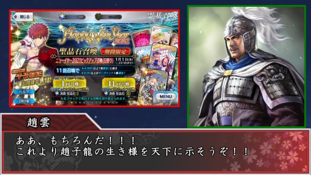 <br><span style="font-size: 18px;">これは、サーヴァントの物語ではない<br><br>これは、カルデアのマスターの物語ではない</span><br><br><span style="font-size: 24px;">これは、三国武将たちがFGOで覇道を進む物語だ</span><br><br><br><br><br><br>………せめて3ヶ月前には投稿したかった、いやそれでも遅いけど()<br><br><br><br><br><br><br><span style="font-size: 16px;">初めは三顧の礼だけの単発動画のつもりだったけど、まさか4年近く続くシリーズになろうとは……<br><br>動画を観てくれていた皆さんのおかげです。ありがとう!!</span><br><br><br><br><br>【注意】この動画はフィクションです!!<br><br>歴史上の同名の人物とは別人、架空の人物です。<br><br>FGOのキャラは出てきません。<br><br><br><br><br>マイリスト:<a href="https://www.nicovideo.jp/mylist/59611348" target="_blank" rel="noopener">mylist/59611348</a><br>前回:陽平関の戦い編→<a href="https://www.nicovideo.jp/watch/sm38229675" class="watch">sm38229675</a><br>復活作:下邳の戦い編→<a href="https://www.nicovideo.jp/watch/sm42735485" class="watch">sm42735485</a><br><span style="color: #f3f3f3;">次回:第二部=ネタが思い付いたら</span><br>
