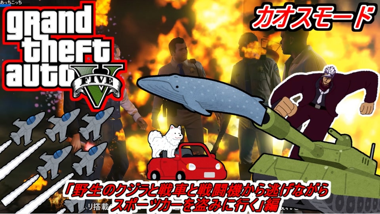 ストーリーをカオスモードでプレイ<br>今回は主人公3人が協力して成金から車を盗みにいくミッション<br>降り注ぐ野生のクジラや戦車や戦闘機をかいくぐり見事クリアするのだ<br><br>You Tube高画質版<br><a href="https://youtu.be/CRMIGRHz6fc" target="_blank" rel="noopener nofollow">https://youtu.be/CRMIGRHz6fc</a><br><br>楽曲提供<br>ぺんぺんさん<br><a href="https://www.nicovideo.jp/user/93911302" target="_blank" rel="noopener nofollow">https://www.nicovideo.jp/user/93911302</a><br><br>手配度MAXシリーズ <a href="https://www.nicovideo.jp/mylist/18374381" target="_blank" rel="noopener">mylist/18374381</a> <br><br>次回 GTA5×スーパーボンバーマンRオンライン再現<br><a href="https://www.nicovideo.jp/watch/sm38857827" target="_blank" rel="noopener nofollow">https://www.nicovideo.jp/watch/sm38857827</a><br><br>前回 GTA5×Nweポケモンスナップ再現<br><a href="https://www.nicovideo.jp/watch/sm38811920" target="_blank" rel="noopener nofollow">https://www.nicovideo.jp/watch/sm38811920</a><br><br>前回の手配度MAX ギンガマン<br><a href="https://www.nicovideo.jp/watch/sm38472216" target="_blank" rel="noopener nofollow">https://www.nicovideo.jp/watch/sm38472216</a><br><br>前回のカオスモード動画:カオスGTA5 サメ編<br><a href="https://www.nicovideo.jp/watch/sm37863236" target="_blank" rel="noopener nofollow">https://www.nicovideo.jp/watch/sm37863236</a><br><br>GTAクルー2 <a href="http://ja.socialclub.rockstargames.com/crew/bsaa-suwa2" target="_blank" rel="noopener nofollow">http://ja.socialclub.rockstargames.com/crew/bsaa-suwa2</a><br>生放送 co1486560<br><br />ふにんがす動画マイリスト <a href="https://www.nicovideo.jp/mylist/71314393" target="_blank" rel="noopener">mylist/71314393</a><br>GTA5手配度MAXシリーズ <a href="https://www.nicovideo.jp/mylist/18374381" target="_blank" rel="noopener">mylist/18374381</a><br><br>【凪尾マイクラ等サーバー参加方法】<br>ニコニコ凪尾チャンネル・クリエイターサポート加入者・NicoFTパス所持者 YouTubeメンバーシップゴールド以上の方々が参加できます! 分からないことがあったら気軽に質問してください!<br>ニコニコチャンネル<br><a href="https://ch.nicovideo.jp/nagio-gta?ref=pc_mypage_top" target="_blank" rel="noopener nofollow">https://ch.nicovideo.jp/nagio-gta?ref=pc_mypage_top</a><br>※会員限定動画はニコニコチャンネル加入者・YouTubeメンバーシップノーマル以上から視聴できます。<br><br>■超会議2025グッズ通販(pixivBooth)<br><a href="https://nagio-gta25252.booth.pm/" target="_blank" rel="noopener nofollow">https://nagio-gta25252.booth.pm/</a><br>■ずんだもん立ち絵公開しました<br><a href="http://nico.ms/im10892141" target="_blank" rel="noopener nofollow">http://nico.ms/im10892141</a><br>■琴葉姉妹立ち絵公開しました<br><a href="https://seiga.nicovideo.jp/seiga/im10803182" target="_blank" rel="noopener nofollow">https://seiga.nicovideo.jp/seiga/im10803182</a><br><br>楽曲提供:ぺんぺんさん:<a href="https://www.nicovideo.jp/user/93911302" target="_blank" rel="noopener">user/93911302</a><br>ふにちかさん作凪尾立ち絵:<a href="https://seiga.nicovideo.jp/seiga/im10956602?nicorepotwitter_upload_illust" target="_blank" rel="noopener nofollow">https://seiga.nicovideo.jp/seiga/im10956602?nicorepotwitter_upload_illust</a><br><br>▼以下配信活動ページ:よかったら登録してね!<br>ニコ生<br><a href="https://www.nicovideo.jp/user/2620730/live_programs?ref=pc_userpage_menu" target="_blank" rel="noopener nofollow">https://www.nicovideo.jp/user/2620730/live_programs?ref=pc_userpage_menu</a><br>YouTubeiS4mQ7q8w?sub_confirmation=1<br>Twitch:<a href="https://www.twitch.tv/nagiogames" target="_blank" rel="noopener nofollow">https://www.twitch.tv/nagiogames</a><br>ツイキャス:<a href="https://twitcasting.tv/g:106250988999788152314" target="_blank" rel="noopener nofollow">https://twitcasting.tv/g:106250988999788152314</a><br><br>VOICEVOX:ずんだもん VOICEVOX:九州そら