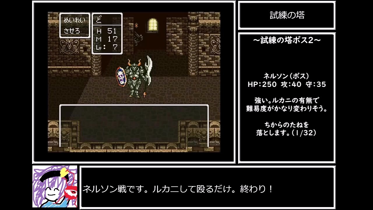 まだ苦行要素はありません。淫夢要素もありません。<br><br>ネタバレ要素はあります。<br><br>【動画内容】<br>・シエーナ~サンマリーノ<br>・動画の最後にアイテムドロップ<br><br><a href="https://www.nicovideo.jp/watch/sm38752153" class="watch">sm38752153</a> ←前 次→ <a href="https://www.nicovideo.jp/watch/sm38921634" class="watch">sm38921634</a><br><br><strong>※データ損失を避けるため、レトロフリークを使用してプレイしております。<br>当たり前ですが改造・チート等は使いません。</strong><br>(そもそも初期設定のままだと使えません!安心!)<br><br><span style="font-size: 16px;"><strong><u>本シリーズのプレイ内容</u></strong></span><br><span style="font-size: 16px;"><strong>1.アイテムコンプリート(モンスタードロップもコンプ)<br>2.一部を除く仲間モンスターを3匹コンプリート<br>3.全仲間キャラの職業・レベルをMAX<br>4.失踪しない</strong></span><br><br>主に上記4つですが他にも色々やろうと考えております。<br><br>この動画で利用している株式会社スクウェア・エニックスを代表とする共同著作者が権利を所有する著作物及びスギヤマ工房有限会社が権利を所有する楽曲の転載・配布は禁止いたします。<br>© 1995 ARMOR PROJECT/BIRD STUDIO/HEART BEAT/SQUARE ENIX All Rights Reserved.<br>© SUGIYAMA KOBO<br>─────────────────────────────<br><br>Youtube版 → <a href="https://youtu.be/sXh5J4T0Z2U" target="_blank" rel="noopener nofollow">https://youtu.be/sXh5J4T0Z2U</a><br>Youtubeチャンネル → <a href="https://www.youtube.com/channel/UCEeOoDzkZH39MbtPwS_OPPQ" target="_blank" rel="noopener nofollow">https://www.youtube.com/channel/UCEeOoDzkZH39MbtPwS_OPPQ</a><br>Twitter → <a href="https://twitter.com/donko_di" target="_blank" rel="noopener nofollow">https://twitter.com/donko_di</a><br>ニコニコ → <a href="https://www.nicovideo.jp/user/32779057" target="_blank" rel="noopener nofollow">https://www.nicovideo.jp/user/32779057</a>