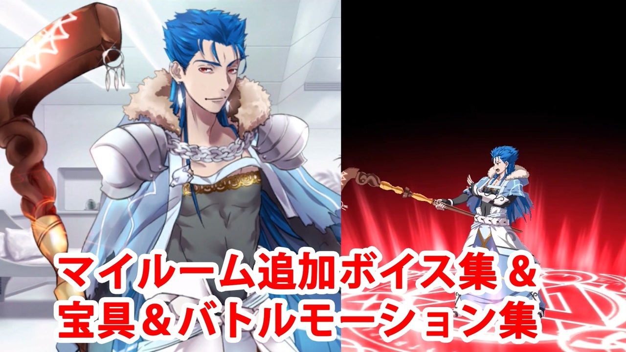 第2部 第6章「Lostbelt No.6 妖精円卓領域 アヴァロン・ル・フェ 星の生まれる刻」(前編)の<br>モーションリニューアルに合わせて追加されたクー・フーリン〔キャスター〕(CV:神奈延年)のマイルーム会話とバトルボイスのまとめと<br>リニューアルされた全バトルモーション(攻撃、スキル、EXアタック、宝具)のまとめです。<br>宝具ボイスは3種、スキルモーションは2種類です。<br><br>宝具「灼き尽くす炎の檻(ウィッカーマン)」<br><br>YouTube版はこちら<br><a href="https://www.youtube.com/watch?v=6524ZfFP4Zg" target="_blank" rel="noopener nofollow">https://www.youtube.com/watch?v=6524ZfFP4Zg</a><br><br>投稿済ボイス集→<a href="https://www.nicovideo.jp/mylist/57873980" target="_blank" rel="noopener">mylist/57873980</a>、<a href="https://www.nicovideo.jp/mylist/68037946" target="_blank" rel="noopener">mylist/68037946</a><br>