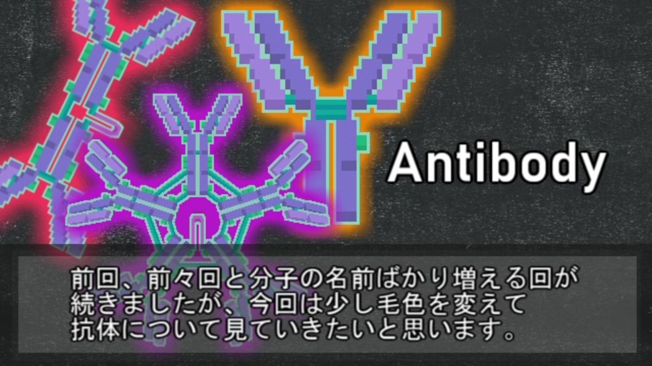 お待たせしました。今回はT細胞の話からB細胞関連の話に飛びます。<br> 前回コメントで、抗体を先に説明することに疑問を抱いていた方がいましたが、実はこれはミスに近く、本当は抗原提示の話をする前に抗体の話をするべきでした。エピトープとかの話は抗原提示より先に説明したほうがよかった項目です。やってしまった。<br> そういえば、前回動画がニコニコ動画トップページで紹介されました。いろいろ突然で紹介されたときには反応できませんでしたが、大変ありがたいことです。今後も、一動画投稿者としてより良い動画を投稿していきたいものです。<br><br><span style="color: #000000; font-size: 14px;">【Twitter】→</span><span style="color: #006699; font-size: 14px;"><a href="https://twitter.com/immunoamateur" target="_blank" rel="noopener nofollow">https://twitter.com/immunoamateur</a></span><br>【第1回】→ <a href="https://www.nicovideo.jp/watch/sm33686747" class="watch">sm33686747</a> 免疫学の基本 <br><span style="color: #000000; font-size: 14px;">【前回】→ </span><a href="https://www.nicovideo.jp/watch/sm38560006" class="watch">sm38560006</a> T細胞活性化<br><span style="color: #000000;">【次回】→ </span><a href="https://www.nicovideo.jp/watch/sm39350309" class="watch">sm39350309</a> Thサブセット<br><span style="color: #000000;">【投稿動画】 → </span><span style="color: #006699; font-size: 14px;"><a href="https://www.nicovideo.jp/mylist/63388345" target="_blank" rel="noopener">mylist/63388345</a></span>