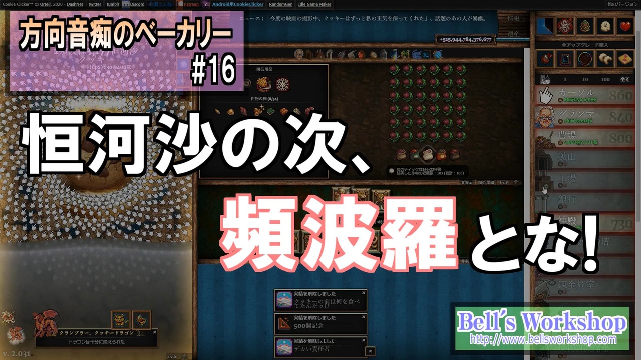 QB農法やってみた。そして頻波羅に到達。<br><br>前:<a href="https://www.nicovideo.jp/watch/sm38829055" class="watch">sm38829055</a> 次:<a href="https://www.nicovideo.jp/watch/sm38977315" class="watch">sm38977315</a> マイリスト:<a href="https://www.nicovideo.jp/mylist/70729379" target="_blank" rel="noopener">mylist/70729379</a><br>※Part16裏話:<a href="http://bellsworkshop.com/cookie-part16/" target="_blank" rel="noopener nofollow">http://bellsworkshop.com/cookie-part16/</a><br><br>ブログ<br><a href="http://www.bellsworkshop.com/" target="_blank" rel="noopener nofollow">http://www.bellsworkshop.com/</a><br><br>Youtubeチャンネル<br><a href="http://www.youtube.com/user/bellsworkshop2" target="_blank" rel="noopener nofollow">http://www.youtube.com/user/bellsworkshop2</a><br><br>Music:purple planet royalty free music <a href="http://www.purple-planet.com/" target="_blank" rel="noopener nofollow">http://www.purple-planet.com/</a><br>Sound:On-Jin ~音人~ <a href="http://on-jin.com/" target="_blank" rel="noopener nofollow">http://on-jin.com/</a><br>