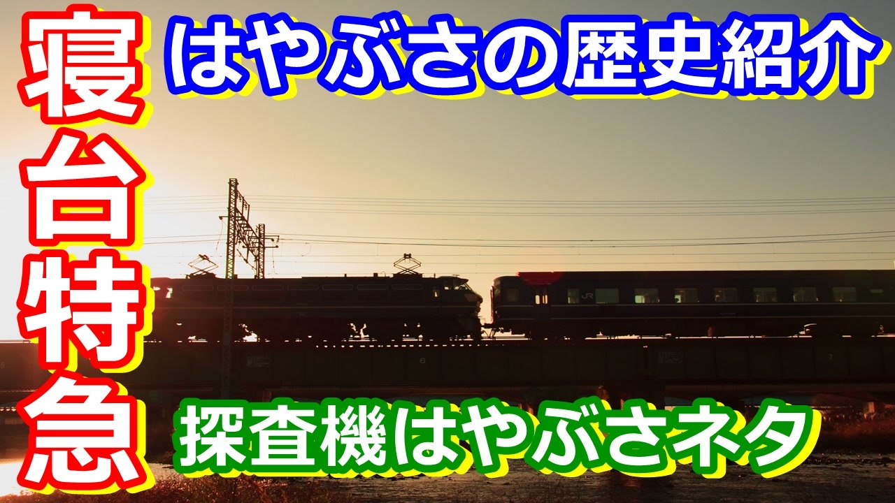 メインチャンネルで解説中の「探査機はやぶさ解説」の冒頭茶番で様々な「はやぶさ」を触りだけ紹介しています<br>今回は、冒頭茶番で紹介した寝台特急はやぶさを紹介します<br>営業距離日本一を誇った最後のブルートレインはやぶさの歴史を簡単に紹介します<br>わたしは鉄道に詳しくないので、間違い等もあるかも・・・<br><br>・アマゾンリンク<br><a href="https://amzn.to/3v3Xyfj" target="_blank" rel="noopener nofollow">https://amzn.to/3v3Xyfj</a><br>公平性や中立性を考えてアフィリエイトリンクは控えていましたが、得た収益を次のレビュー書籍や機材代にするために始めました<br>よろしくお願いします<br><br>いつも広告ありがとうございます<br>有料課金広告はもったいないので、他の優れた動画投稿者へお願いします<br><br>◆チャンネル登録はこちら<br><a href="http://www.youtube.com/channel/UChOv-TZWg3X4MDjFUF8CfQg?sub_confirmation=1" target="_blank" rel="noopener nofollow">http://www.youtube.com/channel/UChOv-TZWg3X4MDjFUF8CfQg?sub_confirmation=1</a><br>◆サブチャンネル(スカイ三平の雑多推進研究所)<br><a href="http://www.youtube.com/channel/UCpQEOLtOpmXUwslvgi93yQw?sub_confirmation=1" target="_blank" rel="noopener nofollow">http://www.youtube.com/channel/UCpQEOLtOpmXUwslvgi93yQw?sub_confirmation=1</a><br>◆twitterはこちら<br><a href="https://twitter.com/skysanpei" target="_blank" rel="noopener nofollow">https://twitter.com/skysanpei</a><br>