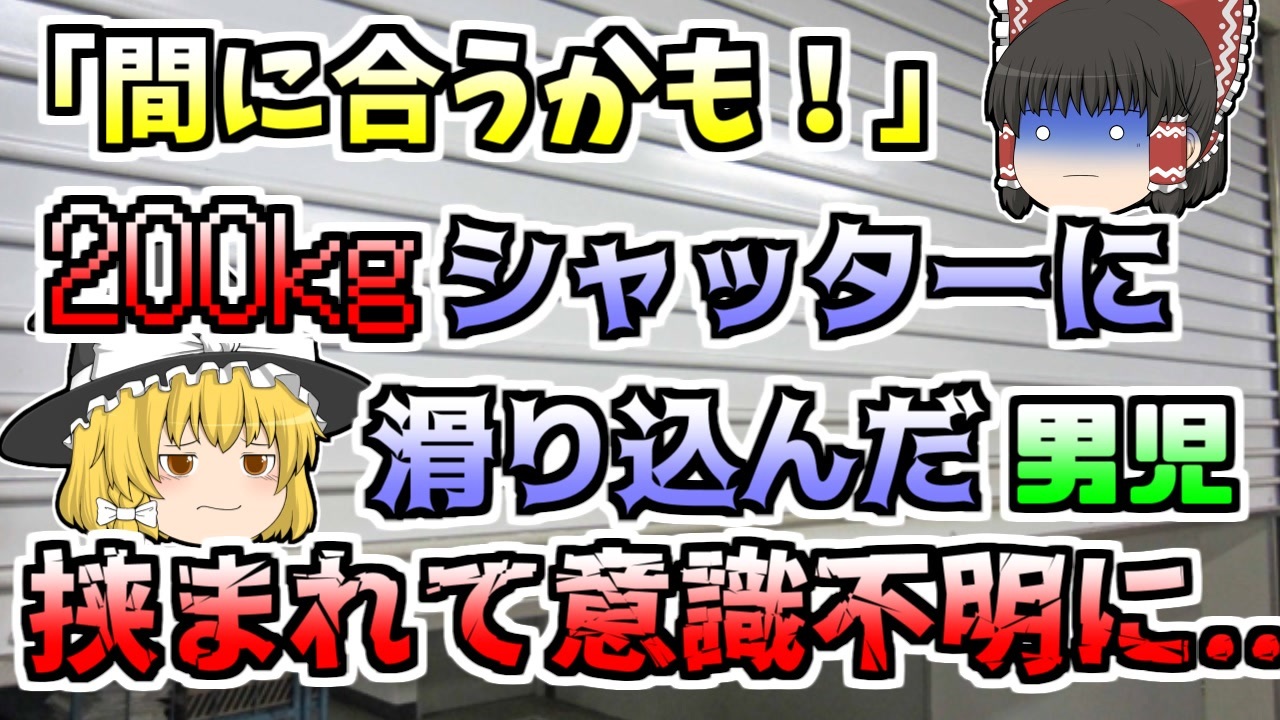 <br>今回はリクエストがありました、「小学校防火シャッター誤作動」の紹介です。<br>感知器の劣化、高すぎた感度によって誤作動してしまい、突然降下しはじめた防火シャッター。<br>これは授業中ではなく、朝の登校時間に発生していたため、一人の男児がその場に居合わせてしまいました。<br>男児は閉まりきる直前のシャッターに滑り込み、ランドセルが引っかかってしまった結果、首をシャッターと床に挟まれてしまいました。<br>この事例がきっかけで、注意喚起が行われ、危害防止のガイドラインが作られたものの、法改正が行われ、安全装置の設置が義務付けられるまで、似たような事故が全国で多発していました。<br><br><br>引用:出典:参考<br>Wikipedia<br><a href="https://ishort.ink/e3qk" target="_blank" rel="noopener nofollow">https://ishort.ink/e3qk</a><br>「最近の主なシャッター事故」 <br>「関東地区新聞記事」<br><a href="https://ishort.ink/NYzy" target="_blank" rel="noopener nofollow">https://ishort.ink/NYzy</a><br>Gooブログ鳥沢小学校<br><a href="https://ishort.ink/ZXWk" target="_blank" rel="noopener nofollow">https://ishort.ink/ZXWk</a><br>教育家庭新聞社<br><a href="https://ishort.ink/4gkn" target="_blank" rel="noopener nofollow">https://ishort.ink/4gkn</a><br>鈴木シャッター<br><a href="https://ishort.ink/M2be" target="_blank" rel="noopener nofollow">https://ishort.ink/M2be</a><br />※この動画は過去の事件を知り、現在でも同じことが発生する危険性を再認識、関与しないように促すための動画であり、視聴者を扇動、動揺を誘うためのコンテンツではありません。<br><br>ご要望にお応えして、メンバーシップの開設を行いました。<br>下記URLからも登録可能ですので、ご興味がある方は是非ご参加ください。<br><a href="https://www.youtube.com/channel/UCcT5a1J7XJW7CLYI2RKl4pw/join" target="_blank" rel="noopener nofollow">https://www.youtube.com/channel/UCcT5a1J7XJW7CLYI2RKl4pw/join</a><br><br><br>Twitter<br>→<a href="https://twitter.com/yukkurisurutoko" target="_blank" rel="noopener nofollow">https://twitter.com/yukkurisurutoko</a><br><br>取り急ぎ、簡易的にですがマイリストを作りました。<br>【ゆっくり解説】事故・事件関係紹介リスト <br><a href="https://www.nicovideo.jp/mylist/71034319" target="_blank" rel="noopener nofollow">https://www.nicovideo.jp/mylist/71034319</a><br>【ゆっくり解説】放射線系事故<br><a href="https://www.nicovideo.jp/mylist/71034368" target="_blank" rel="noopener nofollow">https://www.nicovideo.jp/mylist/71034368</a><br>【ゆっくり解説】鉄道系事故・事件関連<br><a href="https://www.nicovideo.jp/mylist/71034379" target="_blank" rel="noopener nofollow">https://www.nicovideo.jp/mylist/71034379</a>
