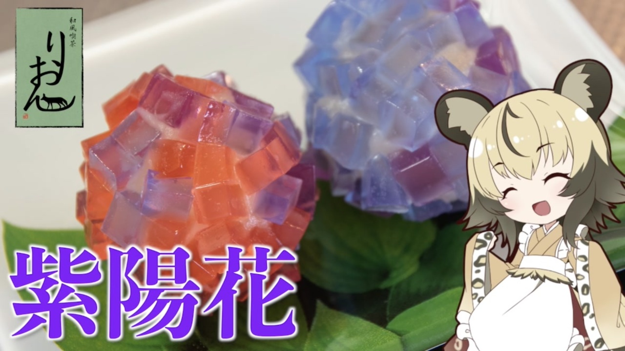 手作り和菓子8回目は「紫陽花」です。<br>この時期見頃を迎える紫陽花の花に因んだ和菓子で、<br>とっても簡単にできますよ。<br><br>■材料<br>・水 450mL<br>・寒天パウダー 5g<br>・色素 お好みで<br><br>・白あん 200g<br><br>youtube:<a href="https://youtu.be/3AXxTn-QWxw" target="_blank" rel="noopener nofollow">https://youtu.be/3AXxTn-QWxw</a><br />twitter:@lycaon_kitchen<br><br>りおんの和風喫茶:<a href="https://www.nicovideo.jp/series/77190" target="_blank" rel="noopener">series/77190</a><br>おつかれごはん:<a href="https://www.nicovideo.jp/series/155690" target="_blank" rel="noopener">series/155690</a><br>手作り和菓子でちょっとひとやすみしませんか?:<a href="https://www.nicovideo.jp/series/155691" target="_blank" rel="noopener">series/155691</a><br><br><span style="color: rgba(0, 0, 0, 0.87);">立ち絵:</span>星華 彩二魔 様<br><span style="color: rgba(0, 0, 0, 0.87);">イラスト:いらすとや、AWD kitchen<br>音源:DOVA-SYNDROME、ポケットサウンド<br>音声:VOICEROID2 </span>紲星あかり、東北イタコ + exVOICE