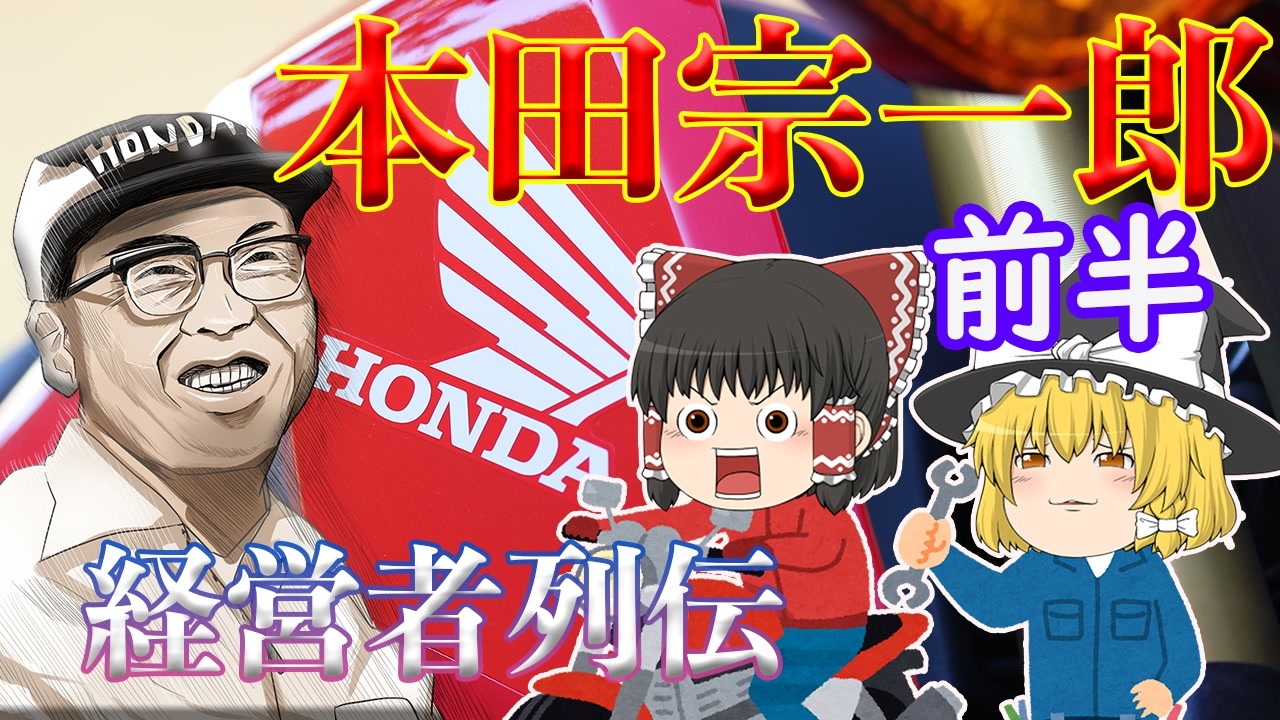 どうも係長です。<br><br>この人ホンダ立ち上げてなかったらただのサイコ○スだと思ってます。<br><br>今回は本田技研工業の創業者本田宗一郎を解説します。<br>亡くなられて30年経ちますが未だに人気の本田宗一郎の理由を解説できたらと思います。<br><br>後半→<a href="https://www.nicovideo.jp/watch/sm38902377" class="watch">sm38902377</a><br>フォロー、マイリスお願いします。<br />ニコニコチャンネル始めました!!→<a href="https://ch.nicovideo.jp/cakachannel" target="_blank" rel="noopener nofollow">https://ch.nicovideo.jp/cakachannel</a> <br><br><span style="font-size: 13px;">Youtubuチャンネル(先行配信)→ <a href="https://goo.gl/fD5iYe" target="_blank" rel="noopener nofollow">https://goo.gl/fD5iYe</a></span><br>Youtubeサブチャンネル(VTuber配信)→<a href="https://bit.ly/2nQnNrQ" target="_blank" rel="noopener nofollow">https://bit.ly/2nQnNrQ</a><br>Youtubeゲームチャンネル→<a href="https://bit.ly/2oCMQz2" target="_blank" rel="noopener nofollow">https://bit.ly/2oCMQz2</a><br><span style="color: #000000; font-size: 13px;">X:(雑談・更新情報・なんかあれば等)→<a href="https://twitter.com/cakari14" target="_blank" rel="noopener nofollow">https://twitter.com/cakari14</a></span><br>ブログ→<a href="http://www.cakaricho.com/" target="_blank" rel="noopener nofollow">http://www.cakaricho.com/</a><br>コミュニティ→co1975392