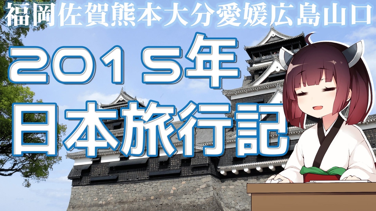 この動画は2015年04月07日から2015年04月30日までの旅の要点記録のみです。<br> <br>旅の路線は福岡(博多、能古島)→佐賀(吉野ヶ里歴史公園)→熊本(熊本城、八代、水俣、阿蘇山)→大分(別府)→愛媛(諏訪崎、宇和島城、天赦園、大洲城、下灘、松山城)→広島(江田島、平和記念公園、竹原、大久野島、厳島、縮景園、広島城)→山口(下関)→福岡(門司港、白野江、小倉城、皿倉山、平尾台、千仏鍾乳洞)。<br> <br>この旅で聖地巡礼したアニメは『中二病でも恋がしたい!』、『そらのおとしもの』、『たまゆら』、『SHIROBAKO』、『AIR』、『咲-Saki-』です。<br> <br>今回は予定ガバガバだし、金遣い荒いし、加えて来年の地震で被災してしまったところが多いと聞いて、いつか再訪したいですね。<br><br>Youtube→<a href="https://www.youtube.com/watch?v=YtGTh7mvLaA" target="_blank" rel="noopener nofollow">https://www.youtube.com/watch?v=YtGTh7mvLaA</a><br>Niconico→<a href="https://www.nicovideo.jp/watch/sm38904087" target="_blank" rel="noopener nofollow">https://www.nicovideo.jp/watch/sm38904087</a><br><br>2015年の日本旅行→ここ<br>2017年の日本旅行→<a href="https://www.nicovideo.jp/watch/sm38929137" class="watch">sm38929137</a><br>2018年夏の日本旅行→<a href="https://www.nicovideo.jp/watch/sm38967163" class="watch">sm38967163</a><br>2018年冬の日本旅行→<a href="https://www.nicovideo.jp/watch/sm39007437" class="watch">sm39007437</a><br><br>Illustration:<br>東北きりたん_座ってる立ち絵素材(ふゆきさん)<br>いらすとや<br> <br>Music:<br>Canon in D Major(Kevin MacLeodさん)<br><br><span style="font-size: 10px;"><i>検索用タグ:カチューシャ(ガールズ&パンツァー)</i></span><br><br>|ボロボロ日本語シリーズ|<br><i><a href="https://www.nicovideo.jp/mylist/69207343" target="_blank" rel="noopener">mylist/69207343</a></i>