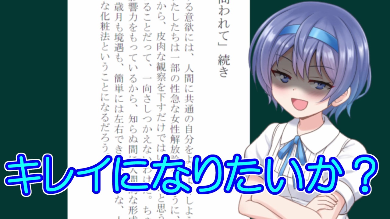 <span style="color: #ff0000; font-size: 24px;"><strong>何歳からでも美肌になれる!</strong></span><br><span style="font-size: 10px;">のだろうか</span><br><br>今回で「読書と思索」の紹介は終わりです。<br><br>昨日予約投稿してしまったので広告者一覧に載せることが出来ませんでしたが<br>前回の動画(#34)にハム小笠原様と雛櫻(茶店親父)様にも広告を頂きました<br>ありがとうございました<br>その他の動画にも広告して頂いた方がいらっしゃいます<br>この場を借りて御礼申し上げます<br><br>新規様へ<br>私の動画はどこから見ても何となく分かると思うので<br>興味を持ったところから、つまりどこからでも見て下さい<br>どこからみてもツヅミチャンカワイイヤッター<br><br>最近面白かった動画<br><a href="https://www.nicovideo.jp/watch/sm38905865" class="watch">sm38905865</a><br><a href="https://www.nicovideo.jp/watch/sm38879652" class="watch">sm38879652</a><br><a href="https://www.nicovideo.jp/watch/sm38895165" class="watch">sm38895165</a><br><a href="https://www.nicovideo.jp/watch/sm38906513" class="watch">sm38906513</a><br><a href="https://www.nicovideo.jp/watch/sm38891660" class="watch">sm38891660</a><br><br>田中美知太郎の本<br>「哲学入門」<br><a href="https://www.nicovideo.jp/watch/sm38178543" class="watch">sm38178543</a><br><br>「読書と思索」<br>1/4:<a href="https://www.nicovideo.jp/watch/sm38316739" class="watch">sm38316739</a><br>2/4:<a href="https://www.nicovideo.jp/watch/sm38532626" class="watch">sm38532626</a><br>3/4:<a href="https://www.nicovideo.jp/watch/sm38877038" class="watch">sm38877038</a><br>4/4:ここ<br><br>冗談か本気か分からないことをつぶやいているところ<br><a href="https://twitter.com/n__m__e" target="_blank" rel="noopener nofollow">https://twitter.com/n__m__e</a>