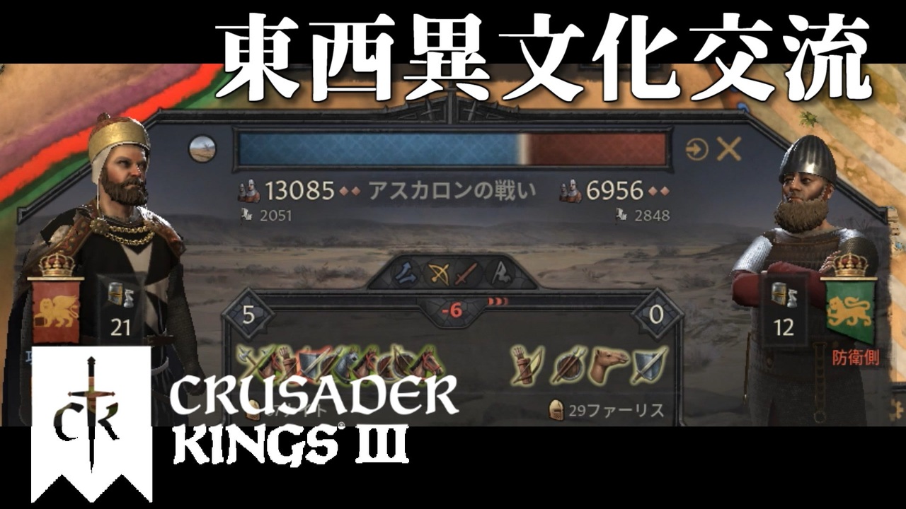 東西異文化交流の巻<br><span style="color: #ff0000;"><strong>※ニコニ広告の再生数に与える影響を知りたいので今回の動画だけ禁止設定にしてます。</strong></span><br>Ver1.31<br>[Crusader Kings 3] Copylight © [2020] Paradox Interactive AB. www.paradoxplaza.com<br><br>使わせていただいた素材サイト<br>フォント:「M+」「装甲明朝」「たぬき油性マジック」<br>効果音:「効果音ラボ」「効果音辞典」「OtoLogic」<br><br /><br><span style="color: #cc0000;">Youtubeチャンネル:<a href="https://www.youtube.com/channel/UCIgzloQ_KfcUN_AcvlxtDdg" target="_blank" rel="noopener nofollow">https://www.youtube.com/channel/UCIgzloQ_KfcUN_AcvlxtDdg</a></span><br><span style="color: #0000ff;">Twitter:<a href="https://twitter.com/proffesor2sk" target="_blank" rel="noopener nofollow">https://twitter.com/proffesor2sk</a></span><br>※その他のプレイ講座はこちら:<a href="https://www.nicovideo.jp/mylist/34307950" target="_blank" rel="noopener">mylist/34307950</a>