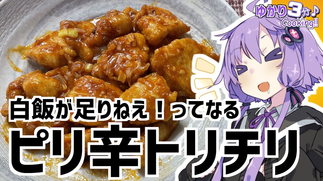 結月ゆかりを使用した料理動画です<br><br>トリチリ作りました<br>野菜が取れないので何か副菜など用意するといいでしょう<br><br>残りのトリチリがどうなったかは『いいね!』を押して確認してくれよな!<br><br>今回使用した材料<br>鳥むね肉:300g ネギ:半分<br>片栗粉:適量 豆板醤:小さじ1/2<br>ショウガ:小さじ1/2 ニンニク:小さじ1/2<br><チリソース><br>水:大さじ2 ケチャップ:大さじ2<br>酒:大さじ1 しょう油:小さじ2<br>砂糖:小さじ1 味覇:少々<br><br><br>前回のオイマヨ:<a href="https://www.nicovideo.jp/watch/sm38891890" class="watch">sm38891890</a><br>蹴上の絶景お花見スポット!JK旅:<a href="https://www.nicovideo.jp/watch/sm38890137" class="watch">sm38890137</a><br><br>オススメのボイロ劇場<br>茜ちゃんと葵ちゃんの現代怪異占い:<a href="https://www.nicovideo.jp/watch/sm38263500" class="watch">sm38263500</a><br><br>ツイッター:<a href="https://twitter.com/mrt89244817" target="_blank" rel="noopener nofollow">https://twitter.com/mrt89244817</a>