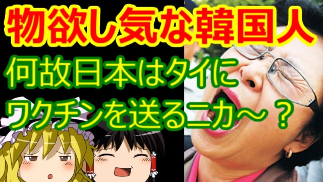 日本が台湾に続き、タイやその他の国々にワクチンを提供予定。<br>タイからは感謝のコメントが続々届いてます!<br>そして韓国人達は超物欲し気に悪態をついてるぞ!<br>【関連動画】<br>愉快な朝鮮人による恥辱の歴史:<a href="https://www.nicovideo.jp/watch/sm36388468" class="watch">sm36388468</a><br>嫌韓スペシャル第2回:<a href="https://www.nicovideo.jp/watch/sm36040947" class="watch">sm36040947</a><br><br>YouTube上のセーフな話チャンネル<br><a href="https://www.youtube.com/channel/UCjSNLMlaGwq9C1BafK0vh9w" target="_blank" rel="noopener nofollow">https://www.youtube.com/channel/UCjSNLMlaGwq9C1BafK0vh9w</a><br><br>YouTube上のサブチャンネル<br><a href="https://www.youtube.com/channel/UCLB3-9hl2H4h1drSThv0y-A" target="_blank" rel="noopener nofollow">https://www.youtube.com/channel/UCLB3-9hl2H4h1drSThv0y-A</a><br><br>Rumble上のサブチャンネル<br><a href="https://rumble.com/user/Saku" target="_blank" rel="noopener nofollow">https://rumble.com/user/Saku</a><br><br>他のシリーズも宜しくね。<br><a href="https://www.nicovideo.jp/user/81752108/series" target="_blank" rel="noopener nofollow">https://www.nicovideo.jp/user/81752108/series</a><br>