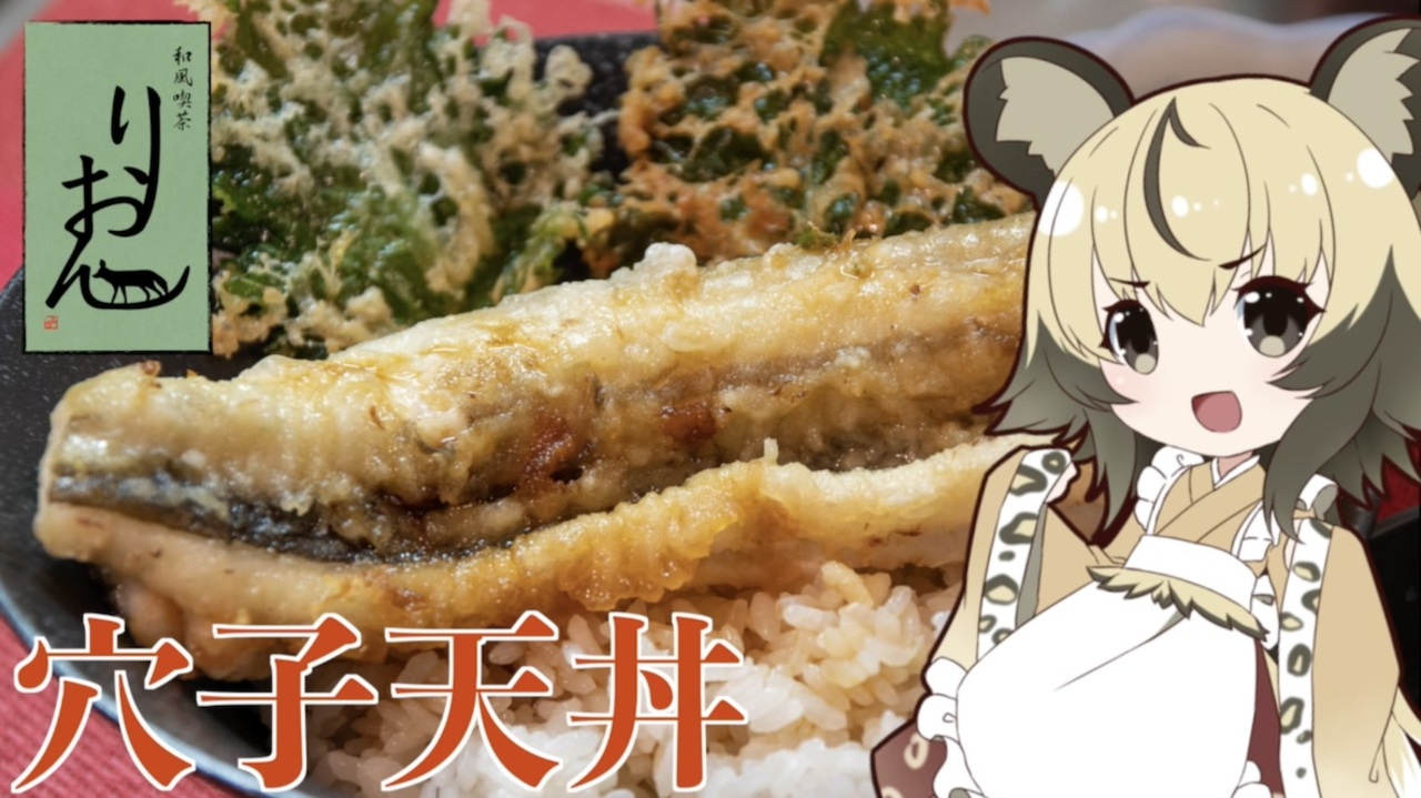 今回は50回記念ということで「穴子天丼」を作ります。<br>穴子を扱うのは初めて、天ぷらも初めてなので、<br>まだまだ改善の余地はありです!<br><br>■材料<br>・穴子 1尾<br>・大葉 お好みで<br><br>天ぷら粉<br>・小麦粉 50g<br>・水 75mL<br>・マヨネーズ 大さじ1<br><br>きゅうりのたたき<br>・きゅうり 2本<br>・かえし 小さじ2<br>・塩 小さじ半分<br>・ごま油 小さじ2<br>・唐辛子 お好みで<br><br>■所要時間<br>作業時間:きゅうりのたたき10分程度(漬け込み1時間)<br> 穴子天丼 20分程度<br><br><br>youtube:<a href="https://youtu.be/7gPamCOh7lI" target="_blank" rel="noopener nofollow">https://youtu.be/7gPamCOh7lI</a><br />twitter:@lycaon_kitchen<br><br>りおんの和風喫茶:<a href="https://www.nicovideo.jp/series/77190" target="_blank" rel="noopener">series/77190</a><br>おつかれごはん:<a href="https://www.nicovideo.jp/series/155690" target="_blank" rel="noopener">series/155690</a><br>手作り和菓子でちょっとひとやすみしませんか?:<a href="https://www.nicovideo.jp/series/155691" target="_blank" rel="noopener">series/155691</a><br><br><span style="color: rgba(0, 0, 0, 0.87);">立ち絵:</span>星華 彩二魔 様<br><span style="color: rgba(0, 0, 0, 0.87);">イラスト:いらすとや、AWD kitchen<br>音源:DOVA-SYNDROME、ポケットサウンド<br>音声:VOICEROID2 </span>紲星あかり、東北イタコ + exVOICE