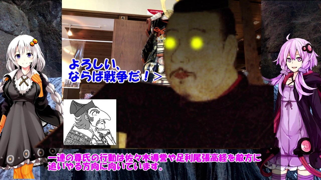 <br>八十八(やそや)です。<br>今回の動画は南朝の二度の京都占領後の足利尊氏帰還時期についての解説です。色々書籍を読んだのですが、この時期の尊氏の行動について包括して説明している記述には当たれませんでした。亀田俊和先生の本から高一族の、森茂暁先生の本から佐々木導誉の記事を拾ってつなげてみると尊氏は結構無茶しています。<br>そして斯波高経こと足利尾張高経が反逆するのもこの頃。小川信先生の本を読んでもその動機はよくわからなかったので、谷口雄太先生の新著の内容をヒントにある程度想像で埋めています。<br><br>【きずゆか中世史:裏足利家の興亡】<br>前:⑪山名の報酬! <a href="https://www.nicovideo.jp/watch/sm38660352" class="watch">sm38660352</a><br>次:12.5 後光厳天皇の恩返し <a href="https://www.nicovideo.jp/watch/sm39035166" class="watch">sm39035166</a><br><br>ツイッター:<a href="https://twitter.com/yasoya_night" target="_blank" rel="noopener nofollow">https://twitter.com/yasoya_night</a><br><br>(参考資料:敬称略)<br>WikiPedia「佐々木道誉」他の記事<br>観応の擾乱:亀田俊和<br>高一族と南北朝内乱:亀田俊和<br>佐々木導誉:森茂暁<br>佐々木道誉:林屋辰三郎<br>南北朝の宮廷誌:小川剛生<br>南北朝武将列伝 北朝編・南朝編:亀田俊和・生駒孝臣・杉山一弥<br>足利一門守護発展史の研究:小川信<br>南朝研究の最前線:呉座勇一・日本史史料研究会<br>室町幕府 全将軍・管領列伝:平野明夫・日本史史料研究会<br>初期室町幕府研究の最前線:亀田俊和・日本史史料研究会<br>国別 守護・戦国大名辞典:西ヶ谷恭弘<br>太平記の時代:新田一郎<br><武家の王>足利氏:谷口雄太<br>ピクトリアル足利尊氏 南北朝の騒乱:永原慶二総監修<br>歴史群像シリーズ⑩戦乱南北朝:学研歴史群像シリーズ編集部<br>太平記の世界 変革の時代を読む:永積安明・上横手政敬・桜井好朗<br>倉山満が読み解く太平記の時代:倉山満<br>倉山満が読み解く足利の時代:倉山満<br>道誉なり:北方謙三<br>パタリロ!:魔夜峰央<br><br><br>※2025/3/21修正<br>足利家系図:足利義氏の妻、北条時子→北条泰時の娘<br>アイキャッチ(欧州情勢複雑怪奇ナリ):人名情報の修正(吉良満家、畠山国詮)<br><br><a target="_blank" href="https://qa.nicovideo.jp/faq/show/19424?site_domain=default" style="font-size: 13px;color: #657586; text-decoration: underline; line-height: 1.4">この動画は投稿者によって修正されました</a>