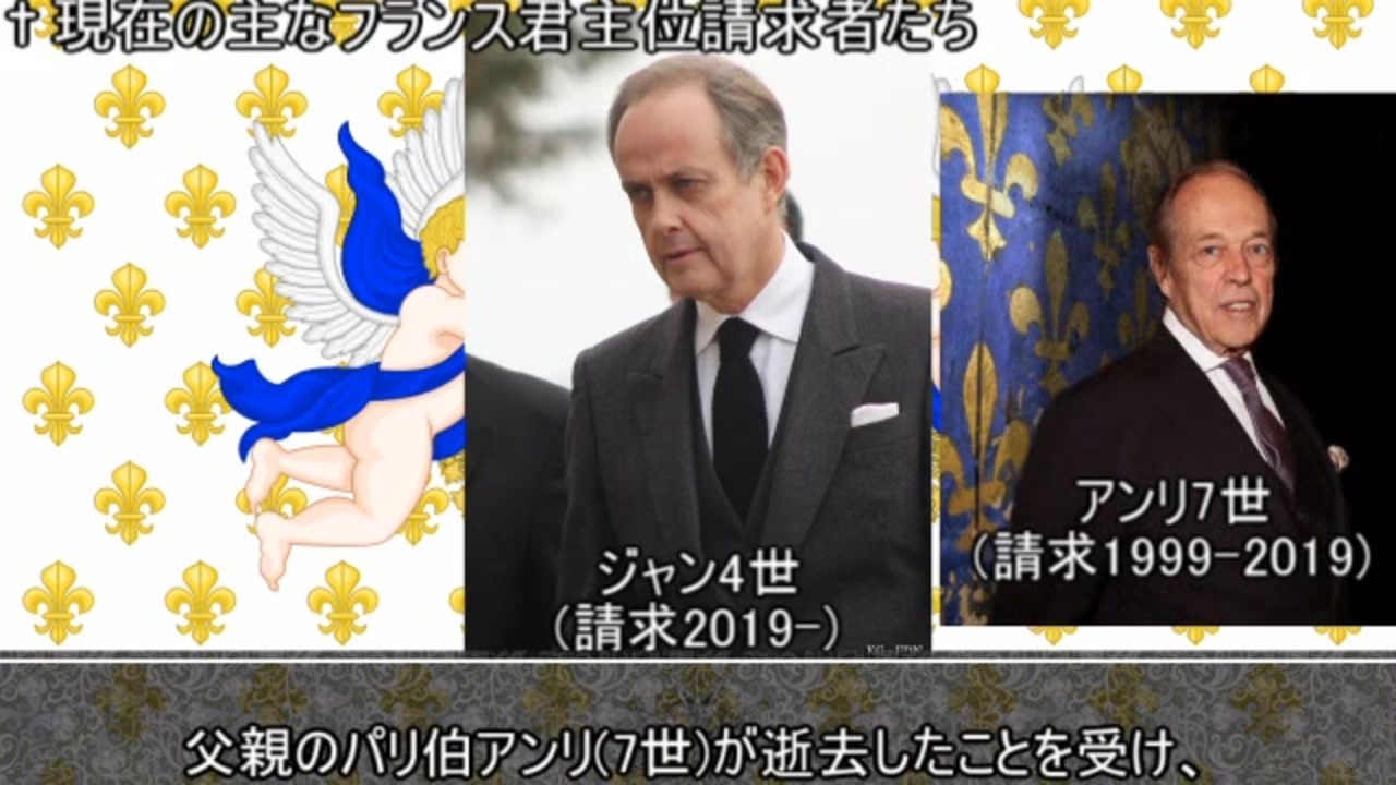 このシリーズは歴史の小話を、ゆっくりさんがしゃべっている動画です。<br><br>今回は外伝として、フランス王位請求者の一覧をまとめました。<br>長くなりましたが、よろしくお願いします。<br><br>BGM:Vive Henri IV<br><br><br><span style="color: #636363; font-size: 13px;">拙作[</span><span style="font-size: 13px;"><a href="https://www.nicovideo.jp/mylist/65337454" target="_blank" rel="noopener">mylist/65337454</a></span><span style="color: #636363; font-size: 13px;">]</span><br>前→[<a href="https://www.nicovideo.jp/watch/sm38939201" class="watch">sm38939201</a>]<br>次→[<a href="https://www.nicovideo.jp/watch/sm38978344" class="watch">sm38978344</a>]<br><br>人物紹介<span style="font-size: 14px;">マイリス→[</span><span style="color: #006699; font-size: 14px;"><a href="https://www.nicovideo.jp/mylist/60477541" target="_blank" rel="noopener">mylist/60477541</a></span><span style="font-size: 14px;">]</span><br><span style="font-size: 13px;">君主紹介</span><span style="font-size: 14px;">マイリス→[</span><span style="color: #006699; font-size: 14px;"><a href="https://www.nicovideo.jp/mylist/65193195" target="_blank" rel="noopener">mylist/65193195</a></span><span style="font-size: 14px;">]</span><br><br>投稿者Twitter(<a href="https://twitter.com/tomoshibi6o6o" target="_blank" rel="noopener nofollow">https://twitter.com/tomoshibi6o6o</a><span style="font-size: 14px;">)<br>感想などお待ちしています。</span>