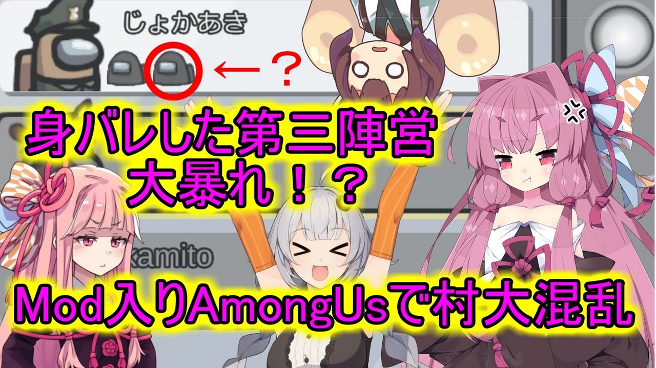 今回はMod入り10人プレイです!<br>インポスター2 てるてる1 マッドメイト1<br>てるてる:吊られたら勝利の第三陣営<br>マッドメイト:キルのできないインポスター陣営<br><br>うぷ主は逆裁未プレイウマ裁未視聴勢のなんちゃって風作成です<br>消さないで・・・消さないで・・・<br><br><strong>*いいねメッセージは今回の役職の内訳で<br>ネタバレを含みますのでご視聴後に押して頂くことをオススメ致します!</strong><br><br>前回:<a href="https://www.nicovideo.jp/watch/sm38862094" class="watch">sm38862094</a> <a href="https://www.nicovideo.jp/mylist/71167166" target="_blank" rel="noopener">mylist/71167166</a> 次回:<a href="https://www.nicovideo.jp/watch/sm39027112" class="watch">sm39027112</a><br><br><br><一緒にプレイしてくれた方々/敬称略><br>じょかあき <a href="https://www.nicovideo.jp/user/390917" target="_blank" rel="noopener">user/390917</a><br>朝ご飯 <a href="https://www.nicovideo.jp/user/34534" target="_blank" rel="noopener">user/34534</a><br>fd <a href="https://www.nicovideo.jp/user/28322950" target="_blank" rel="noopener">user/28322950</a><br>なりす <a href="https://www.nicovideo.jp/user/28505319" target="_blank" rel="noopener">user/28505319</a><br>マグナム <a href="https://www.nicovideo.jp/user/1201830" target="_blank" rel="noopener">user/1201830</a><br>chest <a href="https://twitter.com/chest_nikoniko" target="_blank" rel="noopener nofollow">https://twitter.com/chest_nikoniko</a><br>天崎エンジ <a href="https://twitter.com/darker_enji" target="_blank" rel="noopener nofollow">https://twitter.com/darker_enji</a><br>かがりめ <a href="https://twitter.com/kagari_meeeeeee" target="_blank" rel="noopener nofollow">https://twitter.com/kagari_meeeeeee</a><br>かみとげマグロ <a href="https://www.nicovideo.jp/user/34954490" target="_blank" rel="noopener">user/34954490</a><br><br>配信アーカイブ(生声注意):<a href="https://www.youtube.com/watch?v=sKJxTmkNAMw&t=4800s" target="_blank" rel="noopener nofollow">https://www.youtube.com/watch?v=sKJxTmkNAMw&t=4800s</a><br><br><うぷ主その他動画><br>DbD:<a href="https://www.nicovideo.jp/mylist/65336622" target="_blank" rel="noopener">mylist/65336622</a><br><br>Twitter:<a href="https://twitter.com/Nano_madder" target="_blank" rel="noopener nofollow">https://twitter.com/Nano_madder</a><br><br>YouTube:<a href="https://www.youtube.com/channel/UCThE793GI6tJd6pXNahQVag" target="_blank" rel="noopener nofollow">https://www.youtube.com/channel/UCThE793GI6tJd6pXNahQVag</a><br><br>----------------------------------------------------------------------<br>このコンテンツはMODを導入した非公式サーバーでのプレイです。<br>公式に導入されたモード、役職ではありません。<br><br>制作 Libhalt @libhalt<br>企画 ShoboSuke @shobolinco<br><br>MODサーバーで遊んでみたい方はこちらから<br><a href="https://au.libhalt.net/" target="_blank" rel="noopener nofollow">https://au.libhalt.net/</a><br>----------------------------------------------------------------------<br>