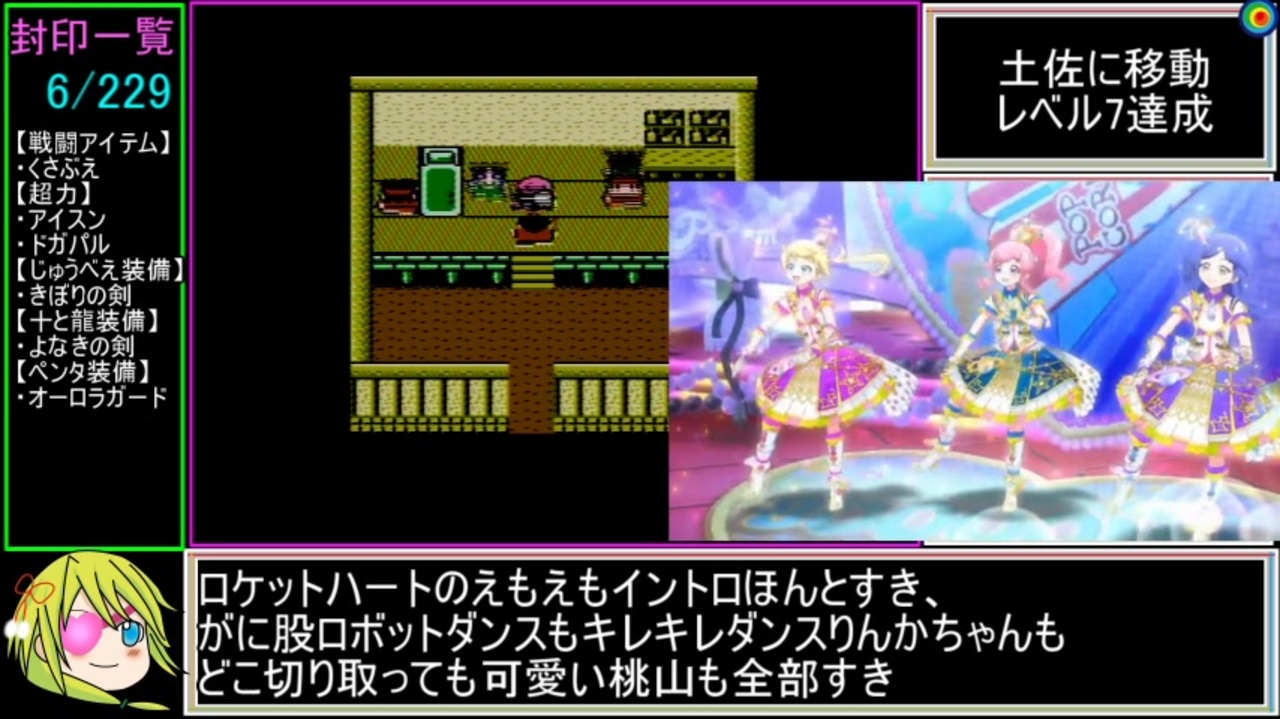 サムネに困ったからキラッツを映しておくんだもん!<br><br>☆縛り内容☆<br>①レベルアップごとに超力・剣技・アイテム・装備が封印(奇数レベルになったら2封印)<br>②じゅうべえウォーク可(逃走および雑魚吟味、ボス戦で負けてリセットも可)<br>③システム上回避不可事項については緩和措置あり<br>④経験値の絡んだリセット禁止(ドロップを見てからのリセット)<br>⑤編集は頑張らない(やりたいようにはやる)<br><br>☆備考(上記③の詳細含む)☆<br>・装備変更不可時に装備物が封印された場合、代わりに1封印捧げて以降の使用を可とする(任意)<br>・封印済み装備の下取り代不問<br>・封印されたロバロバの中身チェックは江戸到達時と必須戦闘時のみとする<br>・露骨な難易度破壊は禁止(げんない解禁時点で封印前に30万両錬金しておく等)<br>・連戦時は最後にまとめて封印を行う<br>・その他諸々は基本テンポ重視、面白さ重視で<br>・まだ封印されていない対象物は出来るだけ「」で表記する<br><br>リスペクト元動画→<a href="https://www.nicovideo.jp/watch/sm37350612" class="watch">sm37350612</a><br>重要度表記とか参考にさせてもらってます→<a href="https://www.nicovideo.jp/watch/sm38385314" class="watch">sm38385314</a><br><br>part1→<a href="https://www.nicovideo.jp/watch/sm38924604" class="watch">sm38924604</a><br>前→<a href="https://www.nicovideo.jp/watch/sm38934296" class="watch">sm38934296</a><br>次→<a href="https://www.nicovideo.jp/watch/sm38992664" class="watch">sm38992664</a>