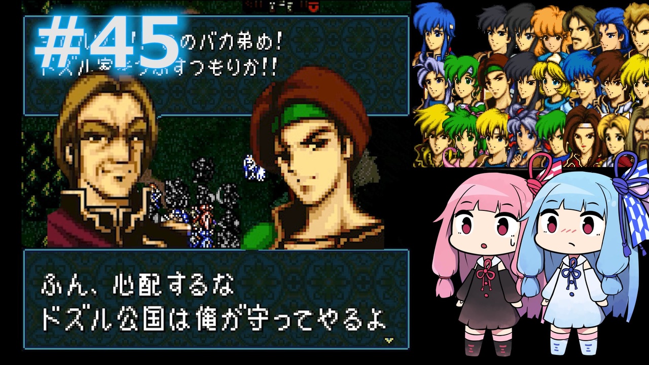 前<a href="https://www.nicovideo.jp/watch/sm38966293" class="watch">sm38966293</a> <a href="https://www.nicovideo.jp/mylist/68640421" target="_blank" rel="noopener">mylist/68640421</a> 次<a href="https://www.nicovideo.jp/watch/sm38975589" class="watch">sm38975589</a><br><br>エッダ軍との激しい戦いが行われている頃、琴葉姉妹は後方となるシアルフィで見知った顔を見つけた。スカサハとラナだ。ラナに腕を引っ張られながらうなだれているスカサハを見て、茜は何かあったのかと眉根を寄せた。「どったんや二人とも。これからエッダ攻略やろ?」そう問われてもスカサハは悔しそうに手を握りしめるだけだ。ラナがあきれた様にため息をついた。「セリス様に叱られて下がってきたんです。戦い方に余裕がなさすぎて危ないって」そう聞いて茜はなるほどな、とうなずいた。スカサハはきっと連れ去られたユリアのことが心配で無茶な戦い方をしていたのだろう。それをセリスにたしなめられたのだ。「スカサハ君は心配なんだね、ユリアちゃんが」葵が茜が思っていたことを口に出した。すみません、と小さな返事が返ってくる。その様子にラナが腰に手を当てて頬を膨らませて言った。「私だってセリス様が心配だわ。セリス様のこと好きだもの。だからこそ信じてるの。セリス様ならどんな戦いも必ず勝ってくださるって。それにこう言ってくれたこともあったの。ラナがいるから恐れずに前に出れるんだよって。だから私は後ろで自信をもって自分の役目を果たせるのよ」惚気るラナの隣で葵がスカサハの頭を優しくなでる。「ユリアちゃんのことを心配なのはわかるけど、ユリアちゃんだってスカサハくんのことが心配だと思うよ。あなたに何かあったらユリアちゃんだって悲しむよ。だから無茶はしないでね」ラナと葵に囲まれたスカサハを見て茜はこの姿をユリアに見せてやりたいと思った。お前のことをこんなに想ってくれる相手がいるんやでと伝えてやりたかった。愛する者同士が引き裂かれる悲しみはもうこりごりだ。「もしさらわれたのが私だったらセリス様も取り乱してくださったのかしら」<br>「はは、ラナはさらわれそうになっても杖で殴れば負けないだろ」笑顔を取り戻したスカサハに殴りかかるラナを見て茜はそう思った。<br><br>スカユリを広めようとする琴葉姉妹はいないと思うので忘れてください。