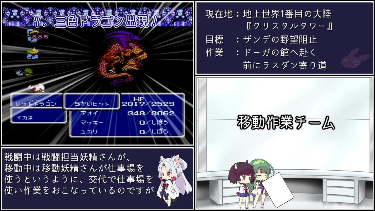 祝!!! FF3ドット絵リメイク(リマスター)!!!<br><br>『FF3』のネタ・バグ技を紹介&解説しながら攻略を進めます。<br>スピーカー左からゲーム音声、右から合成音声解説が流れます。<br>※<strong>本日のふんわり解説コーナーは13:35~</strong><br><br>レベル99化・ダメージ255倍・ワープ・突然エンディング……<br>一見して「なぜそんなことが起きるのか」不思議なバグの数々。<br>その原理を、バグ技実践しつつ、<br>RP2A03・キャリー・ボロー・線形合同法等々の難しい用語抜き<br>でふんわり理解してもらうことを目指す動画になります。<br><br><a href="https://www.nicovideo.jp/watch/sm38850848" class="watch">sm38850848</a>←前回|<a href="https://www.nicovideo.jp/mylist/66640035" target="_blank" rel="noopener">mylist/66640035</a>|<br>※2021/07/22追記<br>FF3リメイク記念にFF3を縛りプレイで攻略中→<a href="https://www.nicovideo.jp/watch/sm39040436" class="watch">sm39040436</a><br>FF3調査の息抜き兼お祭り気分でやっているので<br>興味のある方はご覧になっていってください。<br><br>part1→<a href="https://www.nicovideo.jp/watch/sm35728013" class="watch">sm35728013</a>