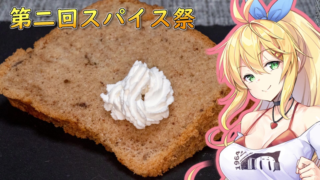 今回はシャルさん主催の第二回スパイス祭に参加していきます。<br>詳細はこちら:<a href="https://www.nicovideo.jp/watch/sm38885632" class="watch">sm38885632</a><br><br>今回はスパイスたっぷりシフォンケーキということでマキマキが作っていきます。<br>材料は以下のとおり。<br><br>【A】<br> 薄力粉(バイオレット) 220g<br> グラニュー糖 270g<br> ベーキングパウダー 小さじ3<br> シナモン 大さじ1<br> オールスパイス 小さじ1/2<br> クローブ 小さじ2/3<br>【B】<br> 卵黄 8個<br> サラダ油 100ml<br> 水 150ml<br> キャラウェイシード 大さじ1<br>【C】<br> 卵白 8個<br><br><br><span style="color: #cc0000; font-size: 16px;">普段は京都観光動画や肉動画上げてますので、よければ是非見てください。<br>マイリスト><a href="https://www.nicovideo.jp/mylist/52050317" target="_blank" rel="noopener">mylist/52050317</a></span><br><br><br>あとツイッターやってます。<br><a href="https://twitter.com/kyomen_siage" target="_blank" rel="noopener nofollow">https://twitter.com/kyomen_siage</a><br>時々、京都観光情報や写真を載せてますのでよろしくです。<br>