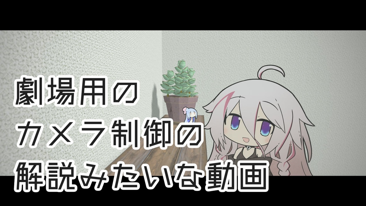 この動画はカメラ制御は感覚を覚えたら意外と楽だよね解説しよと<br>このくらいなら一日で作れると30分で配置してたところで満足して<br>カメラ制御の重いと思いながらなんとなく2徹した末に<br>エンコードに6時間30分かかって編集ミスを直す気力も湧かなくなった経緯があります。<br>投稿者が自覚してるだけでも5つ編集ミスがあります。<br>AviUtlの導入に10回失敗してるのでアップデートが怖くてできてないので<br>もしかしたらアップデートしてる人は軽いかもしれないです…<br>(エンコード時間に6時間かかる時点で1日で作れない気がする...)<br><br>BigPurinさんの葵ちゃんと可愛いだけのなぞの生き物:<a href="https://www.nicovideo.jp/watch/sm35007893" class="watch">sm35007893</a><br>⇒とにかくかわいいのでたくさんの人見てもらいたい。<br> 恐らく今回言ったことが理解できた人にはこの人動画を再現することができます。<br><br>rikkyさんのポリゴン表示(R):<a href="https://www.nicovideo.jp/watch/sm29067584" class="watch">sm29067584</a><br>⇒スクリプトに詳しい向けのより詳しい方:<a href="https://www.nicovideo.jp/watch/sm29067668" class="watch">sm29067668</a><br><br>手ぶらゆかりさんの有難い、えっちじゃない編集:<a href="https://www.nicovideo.jp/watch/sm37366624" class="watch">sm37366624</a><br>⇒ポリゴン表示(R)のことだったり色々立体的な編集を教えてくれます。<br><br>かきしじみさんの藍を待つ:<a href="https://www.nicovideo.jp/watch/sm38937032" class="watch">sm38937032</a><br>⇒ポリゴン表示(R)を使った雰囲気がいいおすすめの劇場動画。<br> おそらくこの人の動画が無ければポリゴン表示(R)が全然わからなかった。。。