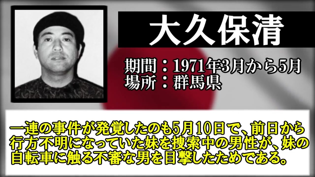 日本のシリアルキラーで、犠牲者数が特に多い10人を紹介します。第二次世界大戦後が対象です。<br>後半→<a href="https://www.nicovideo.jp/watch/sm38986333" class="watch">sm38986333</a><br><br>事件解説動画 <a href="https://www.nicovideo.jp/mylist/64999876" target="_blank" rel="noopener">mylist/64999876</a><br>事件と映画紹介動画 <a href="https://www.nicovideo.jp/mylist/61925498" target="_blank" rel="noopener">mylist/61925498</a><br><br>質問、意見、リクエスト等はコメントもしくはこちらへ。<br>質問箱 <a href="https://peing.net/ja/isofula_bonn" target="_blank" rel="noopener nofollow">https://peing.net/ja/isofula_bonn</a><br>Twitter <a href="https://twitter.com/Isofula_Bonn" target="_blank" rel="noopener nofollow">https://twitter.com/Isofula_Bonn</a><br>YouTube <a href="https://www.youtube.com/channel/UCs5Z_B6x-ZuoSIibt5tNdog" target="_blank" rel="noopener nofollow">https://www.youtube.com/channel/UCs5Z_B6x-ZuoSIibt5tNdog</a>