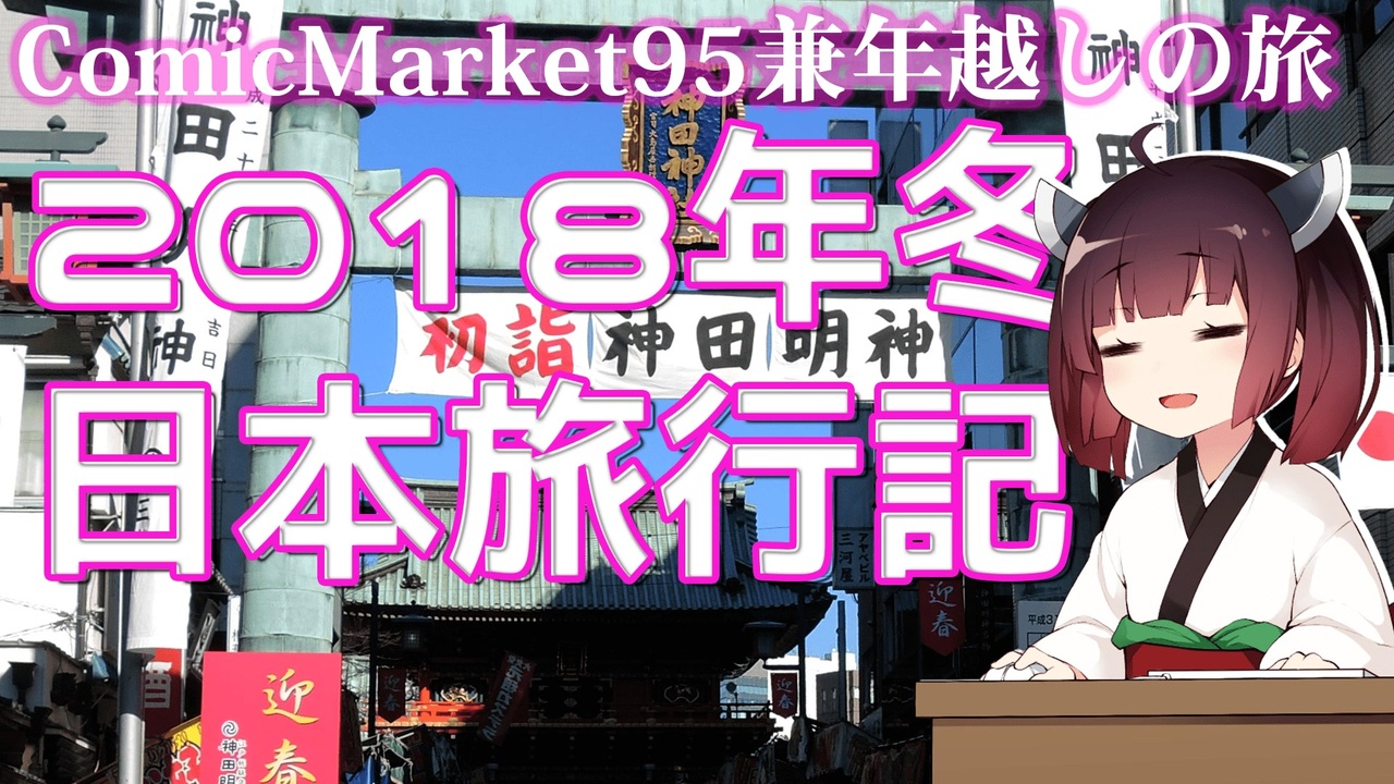 この動画は2018年12月27日から2019年01月04日までの旅の要点記録のみ。<br> <br>今回は浅草を拠点とし、東京を中心に観光します。主な出来事はコミックマーケット95、王子狐の行列、神田明神で初詣、そしてもちろん聖地巡礼です。<br> <br>この旅で聖地巡礼したアニメは主に『SSSS.GRIDMAN』、『四月は君の嘘』、『こちら葛飾区亀有公園前派出所』、『Steins;Gate』、『三ツ星カラーズ』、『デュラララ!!』、『君の名は。』、『普通の女子校生が【ろこどる】やってみた。』、『ラブライブ!』、『ラブライブ!サンシャイン!!』、『映画 中二病でも恋がしたい! -Take On Me-』、『少女歌劇レヴュースタァライト』、『映画けいおん!』です。『SSSS.DYNAZENON』の置き巡礼も含まれていますが、動画では紹介しません。<br><br>Youtube→<a href="https://www.youtube.com/watch?v=wpmosKH6ddw" target="_blank" rel="noopener nofollow">https://www.youtube.com/watch?v=wpmosKH6ddw</a><br>Niconico→<a href="https://www.nicovideo.jp/watch/sm39007437" target="_blank" rel="noopener nofollow">https://www.nicovideo.jp/watch/sm39007437</a><br><br>2015年の日本旅行→<a href="https://www.nicovideo.jp/watch/sm38904087" class="watch">sm38904087</a><br>2017年の日本旅行→<a href="https://www.nicovideo.jp/watch/sm38929137" class="watch">sm38929137</a><br>2018年夏の日本旅行→<a href="https://www.nicovideo.jp/watch/sm38967163" class="watch">sm38967163</a><br>2018年冬の日本旅行→ここ<br><br>Illustration:<br>東北きりたん_座ってる立ち絵素材(ふゆきさん)<br>いらすとや<br> <br>Music:<br>Canon in D Major(Kevin MacLeodさん)<br><br>|ボロボロ日本語シリーズ|<br><i><a href="https://www.nicovideo.jp/mylist/69207343" target="_blank" rel="noopener">mylist/69207343</a></i>