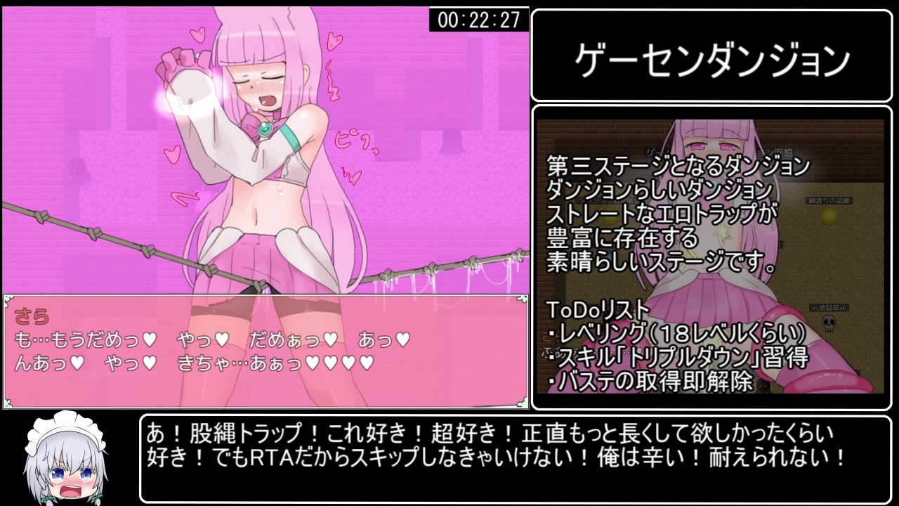 どんなに修正頑張ってもデバイス規制食らうので<br>いっそ無修正で初投稿です。よろしくお願いします。<br><br>【くしもとハウス 】様制作のR-18RPG<br>【魔拳師さら】RTAです。<br>計測開始:ニューゲーム選択<br>計測終了:スタッフクレジットの流れ始め<br>レギュレーション:デフォルト主人公<br>公式チート(システム干渉アイテム及び回想部屋ドーピング)禁止<br><br>次→<a href="https://www.nicovideo.jp/watch/sm39040709" class="watch">sm39040709</a><br><br>魔拳師さらRTAのマイリスト→ <a href="https://www.nicovideo.jp/mylist/71381369" target="_blank" rel="noopener">mylist/71381369</a><br><br>パート1と単発のマイリスト→<a href="https://www.nicovideo.jp/mylist/70659794" target="_blank" rel="noopener">mylist/70659794</a><br><br>前日譚ひなたエスケープRTA→ <a href="https://www.nicovideo.jp/watch/sm38373259" class="watch">sm38373259</a><br><br>twitter:@hihidowser<br><br>スマホやタブレット等から見られない方はこちらの方の動画を参考にすると<br>見られるようになるはずです→ <a href="https://www.nicovideo.jp/watch/sm38575952" class="watch">sm38575952</a><br><br>本作品の購入は下記サイトにて!<br>DLsite(PC)<br><br>HBOX(スマホ)<br>