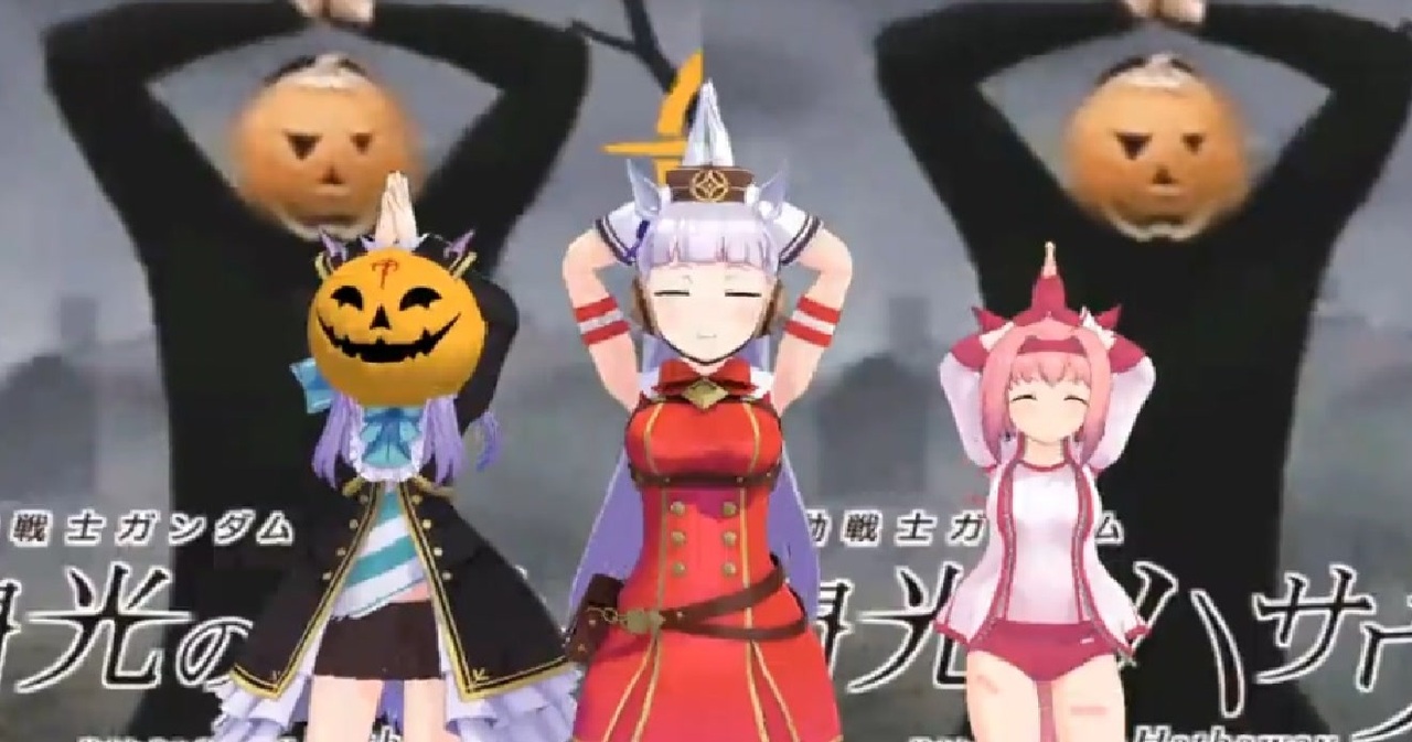 マ「なんですのこのかぼちゃ・・・」<br>ゴ「それ被ると1000年後の偽物に反省を促せる踊りができるらしいぜ」<br>マ「どういうことですの・・・」<br>ウ「かっこいい!」<br><br>元ネタ <a href="https://www.nicovideo.jp/watch/sm38736861" class="watch">sm38736861</a><br><br>ウマ娘他作品<br>1 愉快なメジロ家とハルウララたち <a href="https://www.nicovideo.jp/watch/sm38752679" class="watch">sm38752679</a><br>2 ゴ、ゴ、ゴルシを見るときは <a href="https://www.nicovideo.jp/watch/sm38928065" class="watch">sm38928065</a><br>3 ゴ「ロイツマって知ってっか?」 <a href="https://www.nicovideo.jp/watch/sm39001118" class="watch">sm39001118</a><br>4 やっちゃいますわ!あんな偽物なんか!<a href="https://www.nicovideo.jp/watch/sm39025336" class="watch">sm39025336</a><br>5 十傑集走りしたらスピード上がるんだってよ <a href="https://www.nicovideo.jp/watch/sm39196227" class="watch">sm39196227</a><br>6 ウマ娘達でNIGHT OF FIRE! <a href="https://www.nicovideo.jp/watch/sm39264299" class="watch">sm39264299</a><br>7 阪神が勝利した時のマックイーン <a href="https://www.nicovideo.jp/watch/sm39377849" class="watch">sm39377849</a><br>8 いつメンでいーあるふぁんくらぶ <a href="https://www.nicovideo.jp/watch/sm39479524" class="watch">sm39479524</a><br>9 ゴ「Trick or Treat!お菓子をくれなきゃ飛び蹴りするぞ☆」<a href="https://www.nicovideo.jp/watch/sm39561419" class="watch">sm39561419</a> <br>10 ぜんまいウマ娘レース <a href="https://www.nicovideo.jp/watch/sm39696921" class="watch">sm39696921</a><br>11 劇場版ウマ娘ダンス <a href="https://www.nicovideo.jp/watch/sm39889509" class="watch">sm39889509</a><br>12 ウマ娘達で極楽浄土 <a href="https://www.nicovideo.jp/watch/sm40061746" class="watch">sm40061746</a><br>13 YO!!セイ!!ウンスカイ!! <a href="https://www.nicovideo.jp/watch/sm40148821" class="watch">sm40148821</a><br>14 パリピゴルシ <a href="https://www.nicovideo.jp/watch/sm40592063" class="watch">sm40592063</a><br>15 愉快な葦毛達によるロマンスの神様 <a href="https://www.nicovideo.jp/watch/sm40727240" class="watch">sm40727240</a><br>16 GO-oooooooooooo <a href="https://www.nicovideo.jp/watch/sm40914187" class="watch">sm40914187</a><br>17 Let's GO!!!!!!!!!!!!!!!!!!!! <a href="https://www.nicovideo.jp/watch/sm40974460" class="watch">sm40974460</a><br>18 ハロウィンメイショウドトウ <a href="https://www.nicovideo.jp/watch/sm41211928" class="watch">sm41211928</a><br>19 パラパラを踊るマルゼンスキー達 <a href="https://www.nicovideo.jp/watch/sm42096835" class="watch">sm42096835</a><br>20 外出た瞬間終わったデース!<a href="https://www.nicovideo.jp/watch/sm42232280" class="watch">sm42232280</a><br>21 ウマ娘達でINTERNET YAMERO <a href="https://www.nicovideo.jp/watch/sm42370809" class="watch">sm42370809</a><br><br><br>モーション配布 <a href="https://bowlroll.net/file/257919" target="_blank" rel="noopener nofollow">https://bowlroll.net/file/257919</a><br>PWはこの動画のsm文字含む動画番号です
