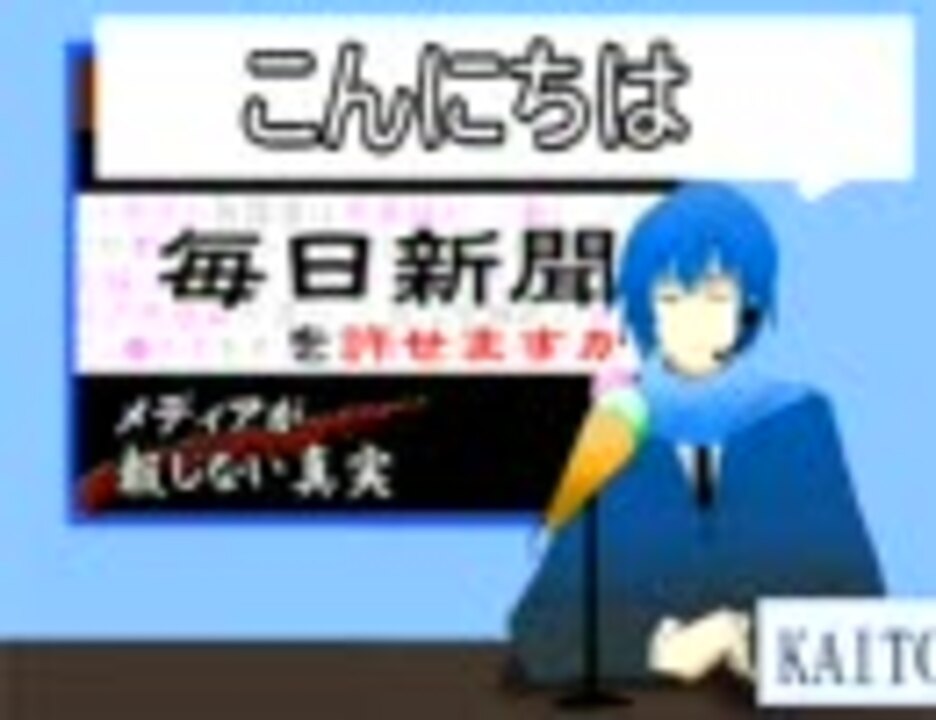 毎日新聞変態報道、まだ毎日は沈黙を続けるのか・・・ この動画は沢山の有志の力で構成されております。ボーカロイドの政治的利用、扇動的な内容他、 批判はうp主までお願いします。コラム第5弾(カイト版3回目)となります。皆さんの力でどんどん拡散お願いします。 この問題について詳しくは→<a href="http://www8.atwiki.jp/mainichi-matome/の毎日新聞問題の情報集積wikiをどうぞ" target="_blank" rel="noopener nofollow">http://www8.atwiki.jp/mainichi-matome/の毎日新聞問題の情報集積wikiをどうぞ</a> 他に作ったもの、ブログmixi等転載は自由にしてください。<a href="https://www.nicovideo.jp/mylist/7410011" target="_blank" rel="noopener">mylist/7410011</a> 他の方が作ったもの<a href="https://www.nicovideo.jp/mylist/7410106" target="_blank" rel="noopener">mylist/7410106</a>ロック希望タグがあればコメにてお願いします。全コラム→<a href="https://www.nicovideo.jp/mylist/7460713" target="_blank" rel="noopener">mylist/7460713</a> うp主への応援メッセージ、批判、希望、要望、お願いなどはこちらへ→newtyperesearch@yahoo.co.jp