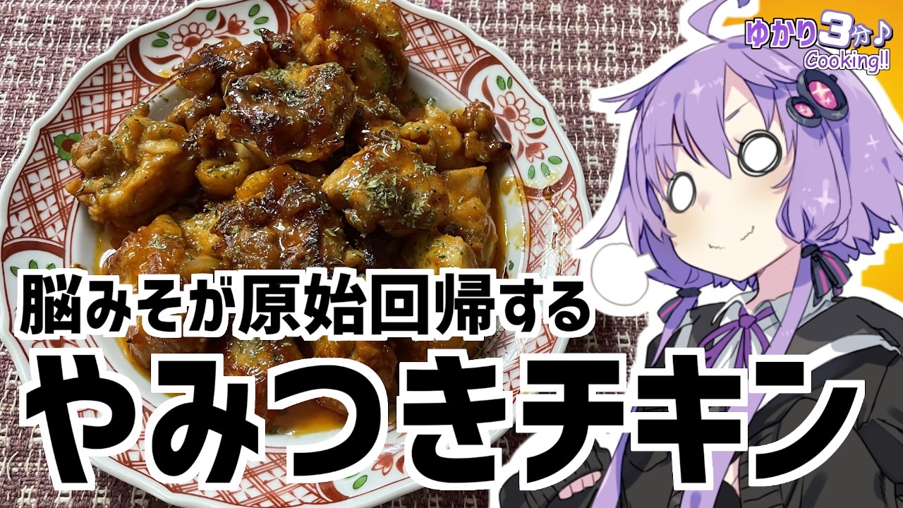 結月ゆかりを使用した料理動画です<br><br>やみつきチキンつくりました<br>パワアアアアアアアアアア!!!!<br><br>パワアの代償に何を失うのか。それは『いいね!』を押して確認してくれよな!<br><br>今回使用した材料<br>鶏もも肉:250g ケチャップ:大さじ3<br>しょうゆ:大さじ1 みりん:大さじ1<br>砂糖:大さじ1 ニンニク:大さじ1程度<br>マヨネーズ:小さじ2 塩コショウ:少々<br>パセリ:あれば<br><br>前回の香味サラダ:<a href="https://www.nicovideo.jp/watch/sm39021118" class="watch">sm39021118</a><br>蹴上の絶景お花見スポット!JK旅:<a href="https://www.nicovideo.jp/watch/sm38890137" class="watch">sm38890137</a><br><br>オススメのボイロ劇場<br>茜ちゃんと葵ちゃんの現代怪異占い:<a href="https://www.nicovideo.jp/watch/sm38263500" class="watch">sm38263500</a><br><br>ツイッター:<a href="https://twitter.com/mrt89244817" target="_blank" rel="noopener nofollow">https://twitter.com/mrt89244817</a>