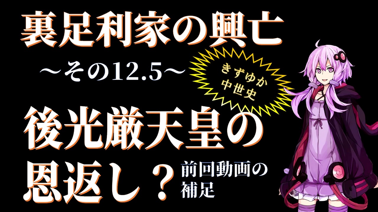 <br>八十八(やそや)です。<br>今回の動画は前回の【きずゆか中世史⑫】怒髪天を衝け 尊氏、怒るの補足動画です。この時期の足利尊氏と佐々木導誉との関係を少しだけ掘り下げました。動画では時系列がわかりにくいのでさらに補足します。<br><br>1554年(文和三年)<br>四月 八日 佐々木導誉、山名についた美作守護富田秀貞の領地を拝領する。<br>六月 七日 後光厳天皇、佐々木導誉に相模国他荘園十ヶ所を安堵。<br>十月 佐々木導誉、北江三郡守護を解任される。<br><br>この動画で紹介した後光厳天皇の綸旨はとても興味深く感じています。動画でも述べた綸旨の有効性、偽文書の可能性、利用実績の有無だけではなくなぜ宛行ではなく安堵なのか、とか導誉の身の破滅につながりかねないこんな危険文書がなぜ現代まで残されているのかなど、考察ポイントが数多くある史料だと思います。関連する研究論文などご存じでしたら是非ともご教示ください。<br><br><br>【きずゆか中世史:裏足利家の興亡】<br>前:⑫怒髪天を衝け 尊氏、怒る <a href="https://www.nicovideo.jp/watch/sm38937470" class="watch">sm38937470</a><br>次:⑬足利尊氏最後の戦い <a href="https://www.nicovideo.jp/watch/sm39077993" class="watch">sm39077993</a><br><br>ツイッター:<a href="https://twitter.com/yasoya_night" target="_blank" rel="noopener nofollow">https://twitter.com/yasoya_night</a><br><br>(参考資料:敬称略)<br>観応の擾乱:亀田俊和<br>佐々木導誉:森茂暁<br>佐々木道誉:林屋辰三郎<br>南北朝武将列伝 北朝編・南朝編:亀田俊和・生駒孝臣・杉山一弥<br>倉山満が読み解く足利の時代:倉山満<br>道誉なり:北方謙三<br><br>