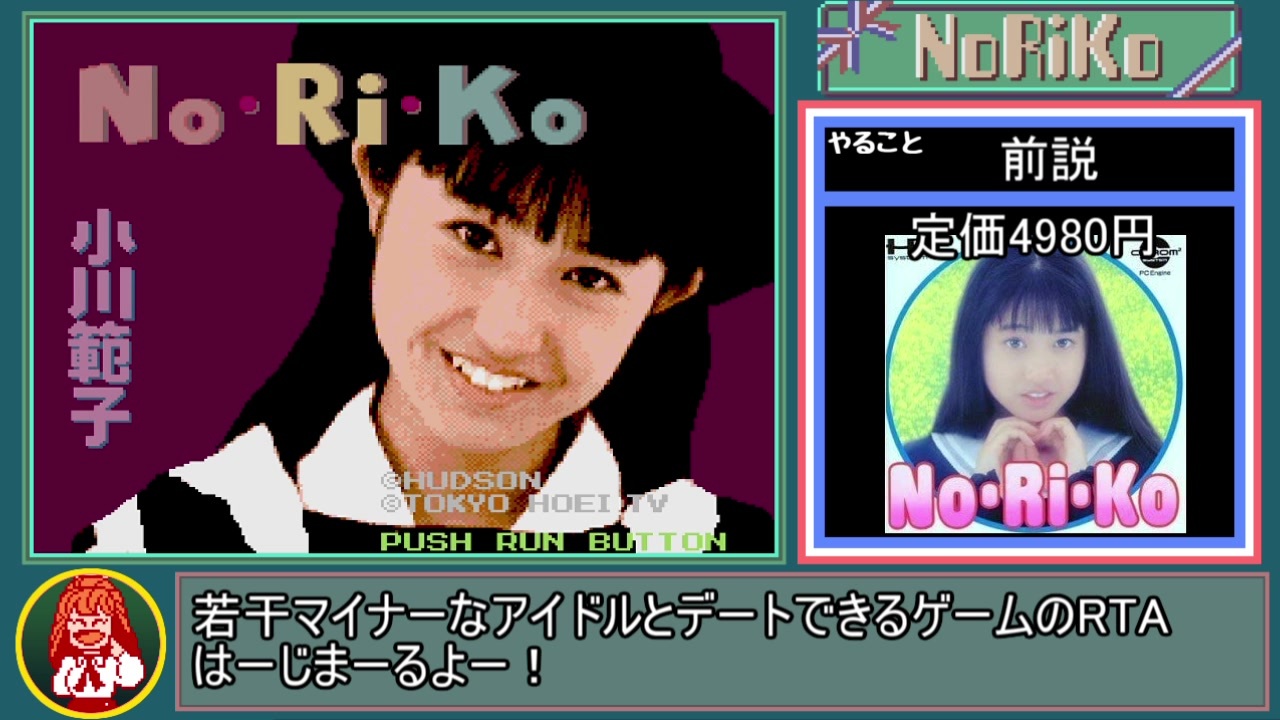 世界初のCDロムゲームなので初投稿です。<br>当時感バリバリのアイドルゲーム、いいあじでてますね・・・<br><br>次作→<a href="https://www.nicovideo.jp/watch/sm39137088" class="watch">sm39137088</a>(オンスロート)<br>前作→<a href="https://www.nicovideo.jp/watch/sm38968876" class="watch">sm38968876</a>(暴れん坊天狗)<br>自作RTA→<a href="https://www.nicovideo.jp/mylist/66567417" target="_blank" rel="noopener">mylist/66567417</a><br><br>レギュレーション<br>計測開始:スタートボタンを押した瞬間<br>計測終了:最後の日記画面が暗転した瞬間<br>環境:Ootake・スーパーシステムカード ver 3.0・コントローラーアダプターforSFC・スーパーファミコン用コントローラー<br /><br><span style="font-size: 18px;"><strong>↓</strong></span><span style="color: #ff0000; font-size: 18px;"><strong>生放送(毎日20時~24時くらい)</strong></span><br><span style="font-size: 18px;"><strong><a href="https://www.twitch.tv/yuyukichi2" target="_blank" rel="noopener nofollow">https://www.twitch.tv/yuyukichi2</a><br>↓</strong></span><span style="color: #0000ff; font-size: 18px;"><strong>ツイッター</strong></span><br><span style="font-size: 18px;"><strong><a href="https://twitter.com/YuyukichiRTA" target="_blank" rel="noopener nofollow">https://twitter.com/YuyukichiRTA</a><br>↓</strong></span><span style="color: #ff9900; font-size: 18px;"><strong>ホームページ</strong></span><br><span style="font-size: 18px;"><strong><a href="https://yuyukichirta.wixsite.com/yuyukichi" target="_blank" rel="noopener nofollow">https://yuyukichirta.wixsite.com/yuyukichi</a></strong></span>
