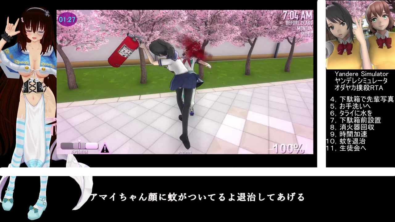 2人目の恋敵 <br><br><strong><u>計測区間/レギュ<br>レギュ立案者様動画を参照→</u></strong><a href="https://www.nicovideo.jp/watch/sm39036354" class="watch">sm39036354</a><br><strong><u>事前準備した(※)ファイル選択時~日付選択画面まで<br>オダヤカちゃん撲殺END<br>計測タイムはSpeedRun.com基準ではなく、当ゲームニコニコ動画先駆者様基準のためロード時間も計測</u></strong><br><br><strong><u>※1.オサナは友情エンドで排除 2.ムード値100 3.クラブ未加入 4.先輩写真無し<br>5.スキル振り無し 6.インフォポイント無し 7.アヤノちゃん評判初期値±5以内(今回は+1)8.他生徒との関係無し(誘拐/タスク等)</u></strong><br><br>退学エンド→<a href="https://www.nicovideo.jp/watch/sm38797445" class="watch">sm38797445</a><br>物理攻撃エンド→<a href="https://www.nicovideo.jp/watch/sm38823680" class="watch">sm38823680</a><br>感電排除エンド→<a href="https://www.nicovideo.jp/watch/sm38837347" class="watch">sm38837347</a><br>退学エンド(再走)→<a href="https://www.nicovideo.jp/watch/sm38853028" class="watch">sm38853028</a><br>友情エンド→<a href="https://www.nicovideo.jp/watch/sm38914350" class="watch">sm38914350</a><br>失恋エンド→<a href="https://www.nicovideo.jp/watch/sm38977299" class="watch">sm38977299</a><br>冤罪エンド→<a href="https://www.nicovideo.jp/watch/sm39016393" class="watch">sm39016393</a><br><br>無編集版(You Tube)→<a href="https://youtu.be/wJn7GhxhqGM" target="_blank" rel="noopener nofollow">https://youtu.be/wJn7GhxhqGM</a><br><br>広告者様編集で使用させて頂いたソフト→<a href="https://www.nicovideo.jp/watch/sm31022160" class="watch">sm31022160</a><br><br>RTAマイリス⇒<a href="https://www.nicovideo.jp/mylist/69428960" target="_blank" rel="noopener">mylist/69428960</a>