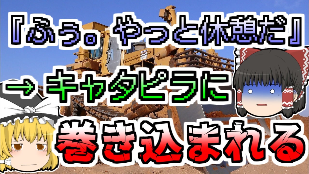 #ゆっくり解説 #ゆっくりするところ #ブルドーザー<br>今回はリクエストがありました「ブルドーザーキャタピラ巻き込まれ」についての紹介です。<br>午前中の作業を終えて、ようやく昼休憩をとっていた作業員「A」。<br>しかし、彼は『あること』を忘れ、ブルドーザーを停車し、休憩してしまっていました。<br><br>休憩終了後、同僚が倒れこんでいるAを発見。<br>彼は無残にも、胴体をキャタピラに潰され、帰らぬ人となっていました。<br><br><br><br>引用:出典:参考<br>Wikipedia<br><a href="https://ishort.ink/Ev7G" target="_blank" rel="noopener nofollow">https://ishort.ink/Ev7G</a><br> MSHA<br><a href="https://ishort.ink/NEFP" target="_blank" rel="noopener nofollow">https://ishort.ink/NEFP</a><br>サイドローズ<br><a href="https://ishort.ink/U15t" target="_blank" rel="noopener nofollow">https://ishort.ink/U15t</a><br />※この動画は過去の事件を知り、現在でも同じことが発生する危険性を再認識、関与しないように促すための動画であり、視聴者を扇動、動揺を誘うためのコンテンツではありません。<br><br>ご要望にお応えして、メンバーシップの開設を行いました。<br>下記URLからも登録可能ですので、ご興味がある方は是非ご参加ください。<br><a href="https://www.youtube.com/channel/UCcT5a1J7XJW7CLYI2RKl4pw/join" target="_blank" rel="noopener nofollow">https://www.youtube.com/channel/UCcT5a1J7XJW7CLYI2RKl4pw/join</a><br><br><br>Twitter<br>→<a href="https://twitter.com/yukkurisurutoko" target="_blank" rel="noopener nofollow">https://twitter.com/yukkurisurutoko</a><br><br>取り急ぎ、簡易的にですがマイリストを作りました。<br>【ゆっくり解説】事故・事件関係紹介リスト <br><a href="https://www.nicovideo.jp/mylist/71034319" target="_blank" rel="noopener nofollow">https://www.nicovideo.jp/mylist/71034319</a><br>【ゆっくり解説】放射線系事故<br><a href="https://www.nicovideo.jp/mylist/71034368" target="_blank" rel="noopener nofollow">https://www.nicovideo.jp/mylist/71034368</a><br>【ゆっくり解説】鉄道系事故・事件関連<br><a href="https://www.nicovideo.jp/mylist/71034379" target="_blank" rel="noopener nofollow">https://www.nicovideo.jp/mylist/71034379</a>