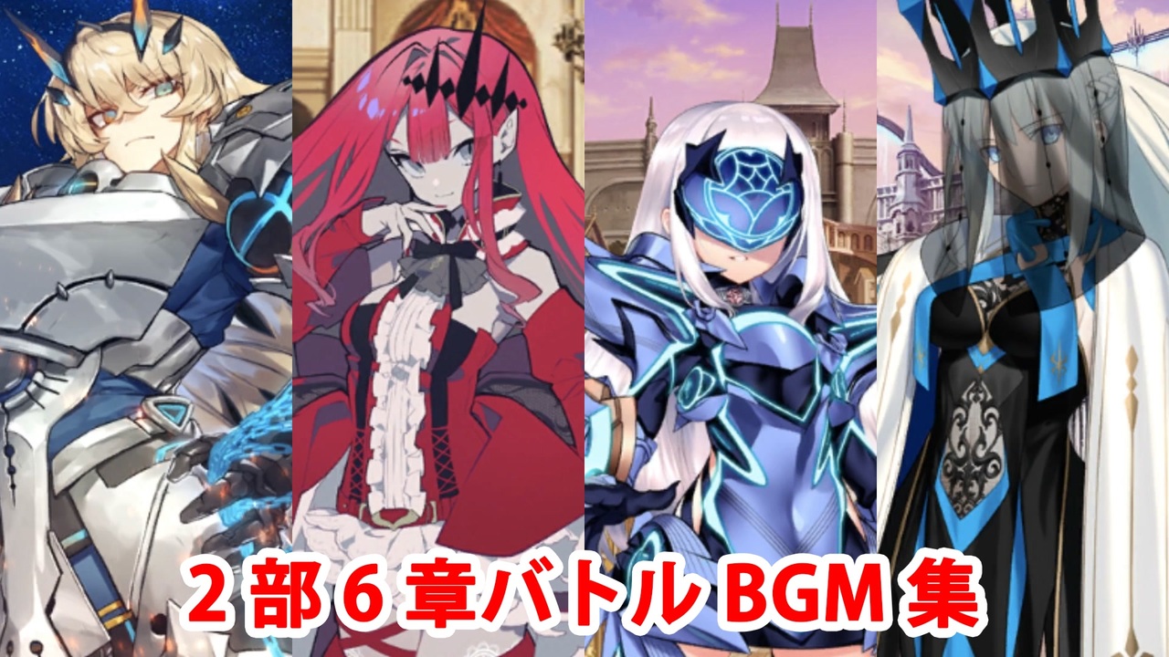 第2部 第6章「妖精円卓領域 アヴァロン・ル・フェ 星の生まれる刻」のバトルBGMのまとめです。<br><br><a href="#" class="seekTime" data-seekTime="00:00" onclick="seekNicoPlayer('#00:00'); return false;">#00:00</a> 咎人たち ~BATTLE 14~<br><a href="#" class="seekTime" data-seekTime="02:36" onclick="seekNicoPlayer('#02:36'); return false;">#02:36</a> 選定の槍 ~FATAL BATTLE 5~<br><a href="#" class="seekTime" data-seekTime="05:09" onclick="seekNicoPlayer('#05:09'); return false;">#05:09</a> Black Prominence ~妖精騎士ガウェイン戦~<br><a href="#" class="seekTime" data-seekTime="08:12" onclick="seekNicoPlayer('#08:12'); return false;">#08:12</a> Scarlet Dancer ~妖精騎士トリスタン戦~<br><a href="#" class="seekTime" data-seekTime="11:22" onclick="seekNicoPlayer('#11:22'); return false;">#11:22</a> 燃えた絵本 ~ロンディニウムの騎士戦~<br><a href="#" class="seekTime" data-seekTime="14:07" onclick="seekNicoPlayer('#14:07'); return false;">#14:07</a> Azure Luster ~妖精騎士ランスロット戦~<br><a href="#" class="seekTime" data-seekTime="17:39" onclick="seekNicoPlayer('#17:39'); return false;">#17:39</a> トネリコ ~女王モルガン戦~(GRAND BATTLE)<br><br>YouTube版はこちら<br><a href="https://www.youtube.com/watch?v=9eB1Tp8Li-c" target="_blank" rel="noopener nofollow">https://www.youtube.com/watch?v=9eB1Tp8Li-c</a>