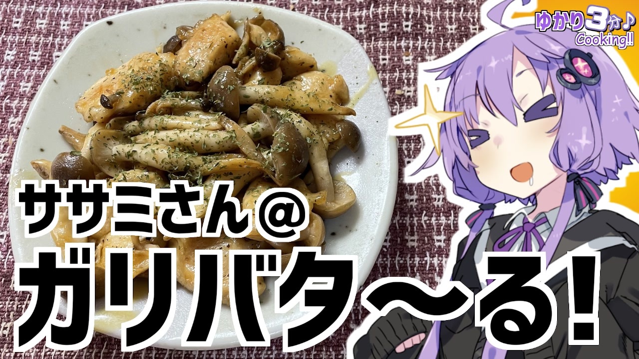 結月ゆかりを使用した料理動画です<br><br>ササミとシメジのガーリックバターソテー作りました!<br>これは美味い!<br><br>ササミと鶏むね肉の違いは『いいね!』を押して確認してくれよな!<br><br>今回使用した材料<br>ササミ:2枚 シメジ:1房<br>ニンニク:1欠 バター:10g<br>片栗粉:大さじ1/2 塩コショウ:少々<br>しょう油:小さじ2 みりん:小さじ1<br>パセリ:あれば<br><br>前回のモンティクリスト:<a href="https://www.nicovideo.jp/watch/sm39051408" class="watch">sm39051408</a><br>蹴上の絶景お花見スポット!JK旅:<a href="https://www.nicovideo.jp/watch/sm38890137" class="watch">sm38890137</a><br><br>オススメのボイロ劇場<br>茜ちゃんと葵ちゃんの現代怪異占い:<a href="https://www.nicovideo.jp/watch/sm38263500" class="watch">sm38263500</a><br><br>ツイッター:<a href="https://twitter.com/mrt89244817" target="_blank" rel="noopener nofollow">https://twitter.com/mrt89244817</a>