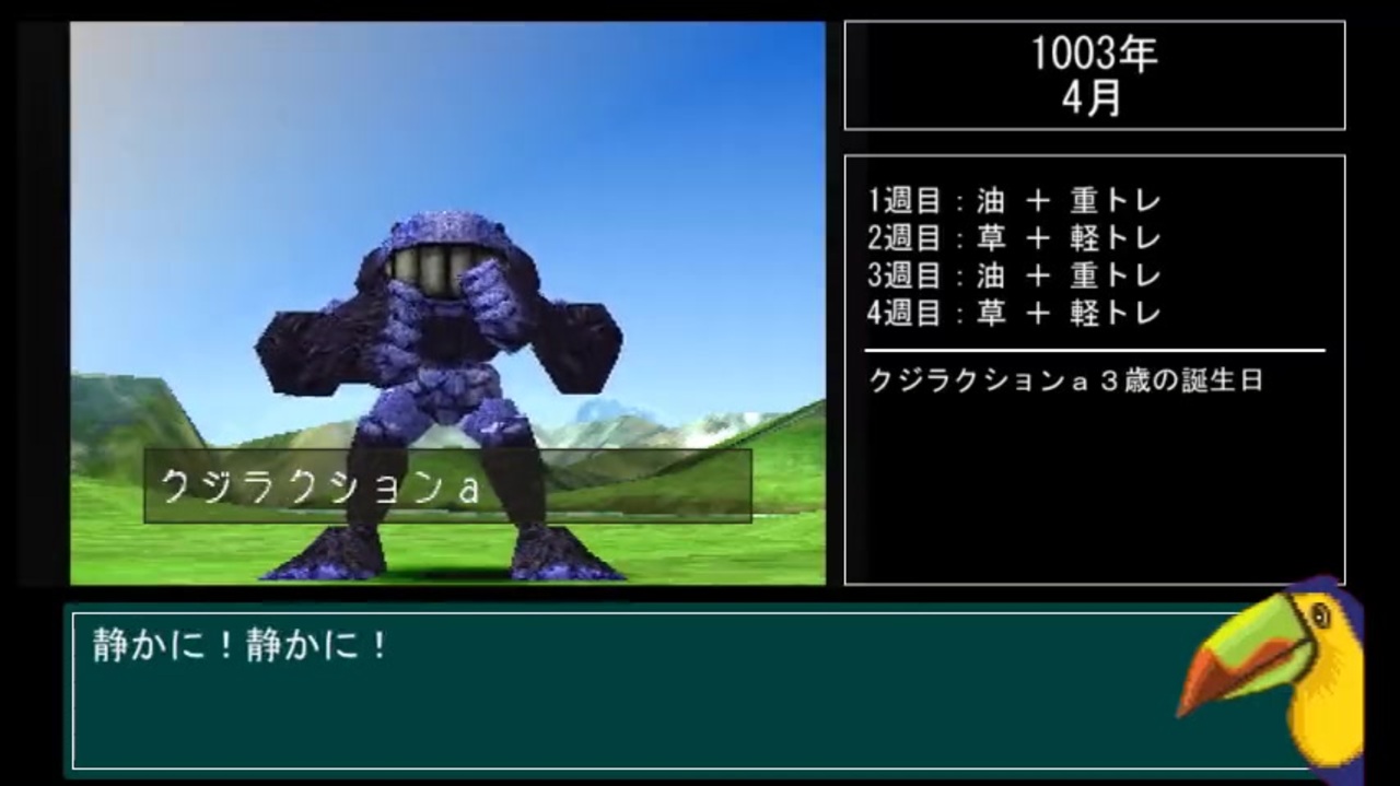 投稿遅いのもクジラクションが怪しいと思います<br><br><a href="https://www.nicovideo.jp/watch/sm38849366" class="watch">sm38849366</a><span style="font-size: 13px;"> ≪前|<a href="https://www.nicovideo.jp/mylist/66892364" target="_blank" rel="noopener">mylist/66892364</a>|次≫ <a href="https://www.nicovideo.jp/watch/sm39223247" class="watch">sm39223247</a></span><br><br>★ 本シリーズのPart1-1:<a href="https://www.nicovideo.jp/watch/sm35940916" class="watch">sm35940916</a><br>★ 育成結果まとめブログ:<a href="https://niconicojoytori.hatenablog.jp/about" target="_blank" rel="noopener nofollow">https://niconicojoytori.hatenablog.jp/about</a><br><br>☆ 特別企画YouTube(ボイスチェンジ配信・エキシビジョンマッチ)<br><a href="https://www.youtube.com/channel/UCcsCZPs_ZmFzsC8A4xr43-g/" target="_blank" rel="noopener nofollow">https://www.youtube.com/channel/UCcsCZPs_ZmFzsC8A4xr43-g/</a><br><br><概要><br>PSゲーム「モンスターファーム2」の縛りプレイです。<br>スタートから<span style="font-size: 13px;">殿堂入りまで、</span>1体だけで目指します。<br><br><span style="font-size: 13px;">① 初期セーブデータから開始 <br>② 市販CDからモンスターを再生(自作CDはダメ) <br>③ 他モンスターの再生禁止 (週送り・金策防止)<br>④ 殿堂入りを目指す <br>⑤ ドーピング系・ソンナバナナ・白銀モモの使用禁止</span><br><br>Twtitter:<a href="https://twitter.com/niconicojoytori" target="_blank" rel="noopener nofollow">https://twitter.com/niconicojoytori</a><br>ジョイ(鳥)@モンスターファーム@niconicojoytori