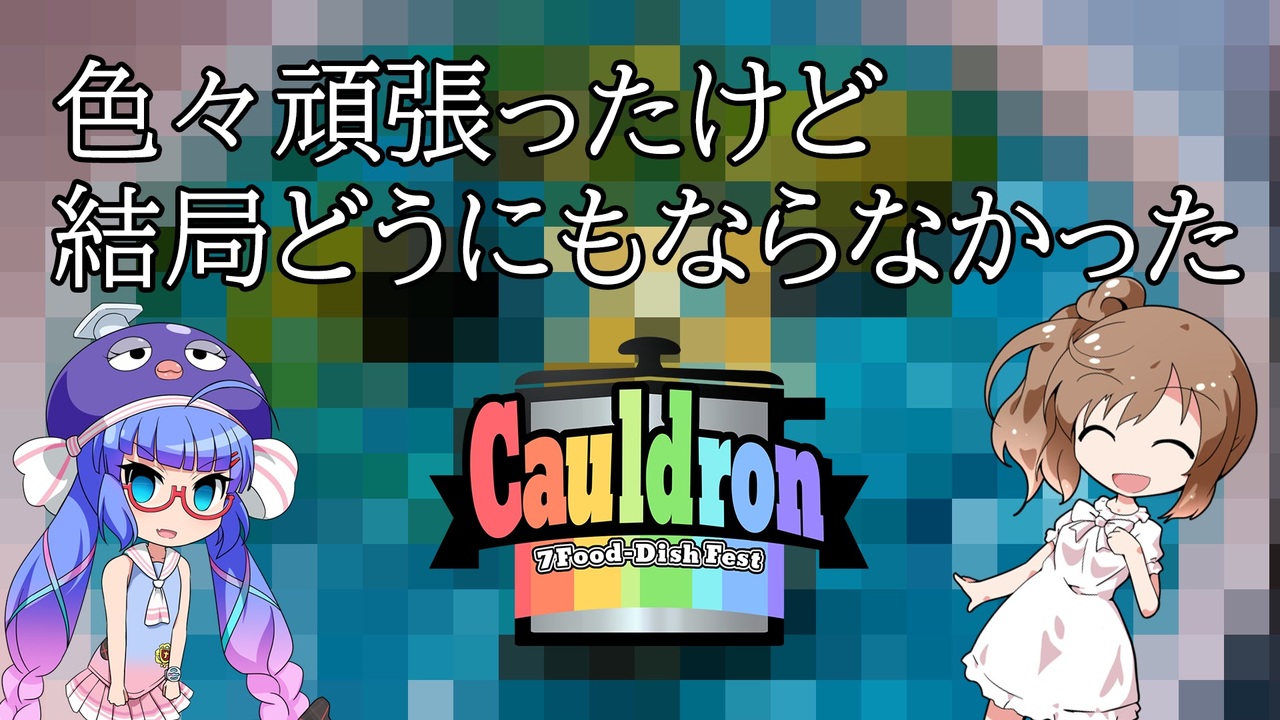 <span style="font-size: 24px;">―さあ、闇鍋を始めよう― </span><br><br>N-1グランプリ特別賞の<s>罰ゲーム</s>賞品として手に入れたCauldronへの参加権 <br>互いに食材を指定しあうルールの中、着色料やお菓子を選択してくるヤバいキッチン投稿者たちから逃げ切ることができるのか<br>ぜひお楽しみください!<br><br>Cauldronマイリス→ <a href="https://www.nicovideo.jp/mylist/71381949" target="_blank" rel="noopener">mylist/71381949</a><br><br>他の人の動画→<br>天ぷら饅頭 さん (<a href="https://www.nicovideo.jp/watch/sm39047253" class="watch">sm39047253</a>)<br>りょの字 さん (<a href="https://www.nicovideo.jp/watch/sm39071613" class="watch">sm39071613</a>) <br>イカロ さん (<a href="https://www.nicovideo.jp/watch/sm39073344" class="watch">sm39073344</a>) <br>伏見 さん (<a href="https://www.nicovideo.jp/watch/sm39070888" class="watch">sm39070888</a>)<br>りおん さん (<a href="https://www.nicovideo.jp/watch/sm39066448" class="watch">sm39066448</a>) <br>再見おじさん さん (<a href="https://www.nicovideo.jp/watch/sm39081511" class="watch">sm39081511</a>) <br>アルコホリック さん (<a href="https://www.nicovideo.jp/watch/sm39083352" class="watch">sm39083352</a>)<br><br>アンケートもあるのでよかったらどうぞ→ <a href="https://docs.google.com/forms/d/e/1FAIpQLSdGBlsJyRtrp9iFKk7l9S-FoDKqw8_1q3CA0_l0CPulNhBSsQ/viewform" target="_blank" rel="noopener nofollow">https://docs.google.com/forms/d/e/1FAIpQLSdGBlsJyRtrp9iFKk7l9S-FoDKqw8_1q3CA0_l0CPulNhBSsQ/viewform</a> (8/1、23:59まで)<br><strong>アンケート締め切りました! ご協力ありがとうございました!</strong><br><br>--------------------------------------------<br>お借りしたBGM<br><a href="https://dova-s.jp/" target="_blank" rel="noopener nofollow">https://dova-s.jp/</a><br>Samurai Chop / Anonyment<br><a href="https://musmus.main.jp/" target="_blank" rel="noopener nofollow">https://musmus.main.jp/</a><br>プラスチックアドベンチャー<br>--------------------------------------------<br>