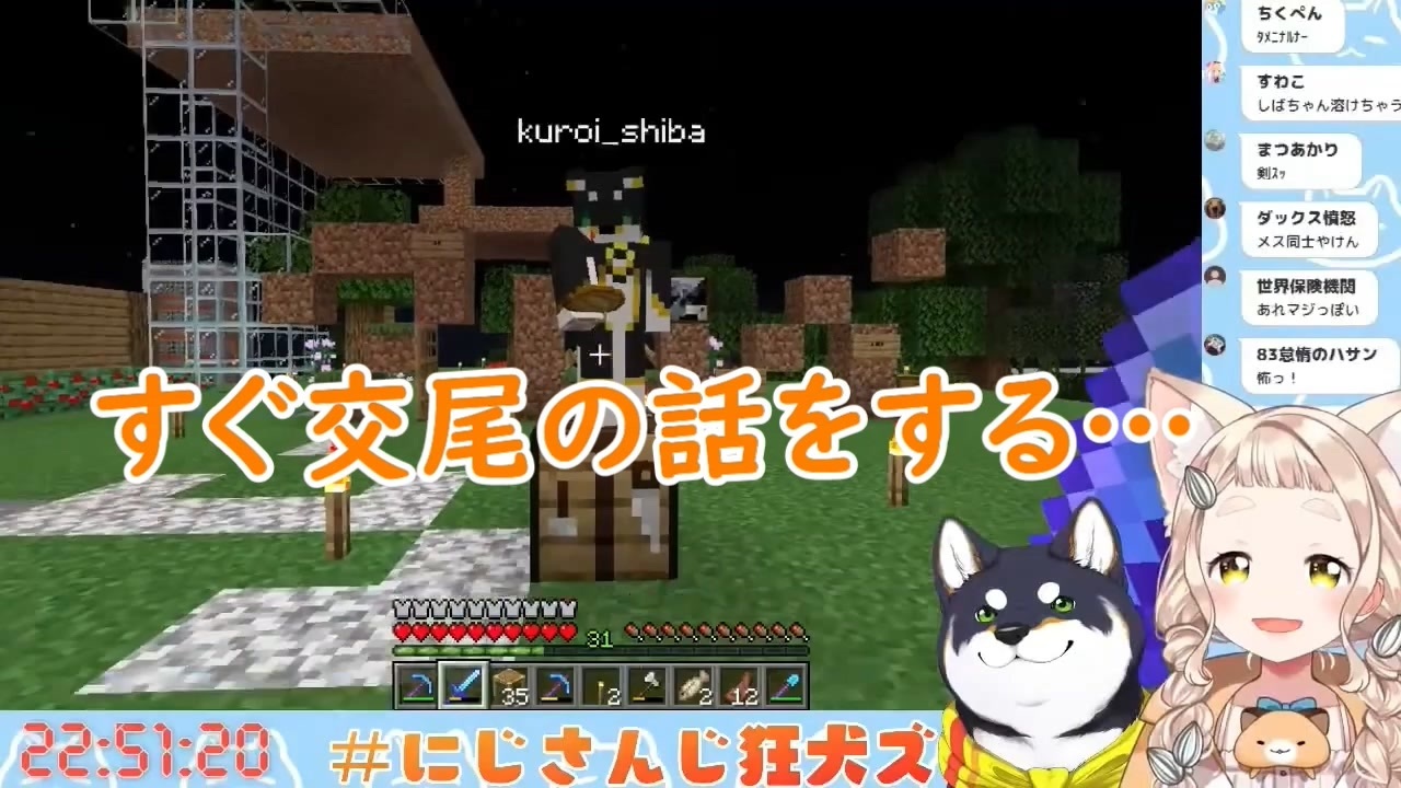 狂犬ズはいいぞ!一緒にいたとき、お互いがハイテンションになるとこが本当に好き<br><br>(誤字のため再投稿)<br><br>【元動画】<br>【Minecraft】狂犬ズマイクラ 七夕スペシャルッ!!!【にじさんじ/町田ちま/黒井しば】(7月7日)<br><a href="https://www.youtube.com/watch?v=SkFjE2UUZwg" target="_blank" rel="noopener nofollow">https://www.youtube.com/watch?v=SkFjE2UUZwg</a><br><br>しばちゃんおかえり!最新の歌ってみた動画↓<br>チチンプイプイ / 黒井しば【歌ってみた】<br><a href="https://www.youtube.com/watch?v=Az0u-l7K9bA" target="_blank" rel="noopener nofollow">https://www.youtube.com/watch?v=Az0u-l7K9bA</a><br><br>町田ちま3Dおめでとう!披露目めちゃよかった!アーカイブ↓<br>【 #町田ちま3D 】上から読んでも下から読んでも町田ちまです!【にじさんじ】<br><a href="https://www.youtube.com/watch?v=zoL0zudcFDw" target="_blank" rel="noopener nofollow">https://www.youtube.com/watch?v=zoL0zudcFDw</a><br><br>初オリジナル曲エモすぎ!MV↓<br>【MV】6月のプレリュード / 町田ちま【にじさんじ】<br><a href="https://www.youtube.com/watch?v=2yD0iNl2E-I" target="_blank" rel="noopener nofollow">https://www.youtube.com/watch?v=2yD0iNl2E-I</a><br>配信ストア <a href="https://linkco.re/eRTsDHdR" target="_blank" rel="noopener nofollow">https://linkco.re/eRTsDHdR</a><br><br>【黒井しば】<br>YouTube:<a href="https://www.youtube.com/channel/UCmeyo5pRj_6PXG-CsGUuWWg" target="_blank" rel="noopener nofollow">https://www.youtube.com/channel/UCmeyo5pRj_6PXG-CsGUuWWg</a><br>Twitter:<a href="https://twitter.com/BlackShiba_chan" target="_blank" rel="noopener nofollow">https://twitter.com/BlackShiba_chan</a><br><br>【町田ちま】<br>YouTube:<a href="https://www.youtube.com/channel/UCo7TRj3cS-f_1D9ZDmuTsjw" target="_blank" rel="noopener nofollow">https://www.youtube.com/channel/UCo7TRj3cS-f_1D9ZDmuTsjw</a><br>Twitter:<a href="https://twitter.com/chima_machita23" target="_blank" rel="noopener nofollow">https://twitter.com/chima_machita23</a><br>