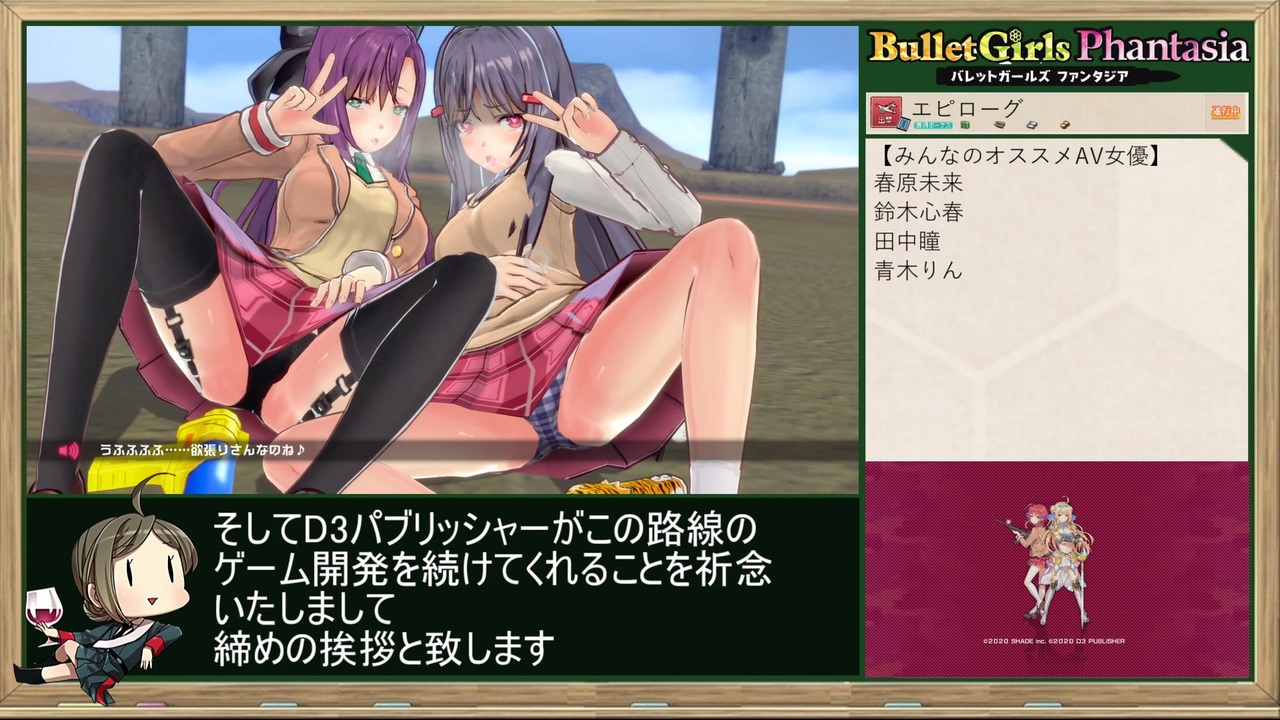 くぅ~疲れました。私が世界一位です。<br><br>【GAME】 <br>Bullet Gils Phantasia<br>(バレットガールズファンタジア)<br>Steam(PC版)<br><br>【レギュレーション】<br>・計測区間:Story選択~最後の尋問特訓を終えてトップ画面に戻るまで<br>・難易度:ノーマル<br>・DLC使用不可<br>・チート・バグ使用不可<br><br>【<a href="https://www.nicovideo.jp/mylist/70578488" target="_blank" rel="noopener">mylist/70578488</a>】<br>PREV≫<a href="https://www.nicovideo.jp/watch/sm38906706" class="watch">sm38906706</a><br><br>≪前作RTA≫END OF ETERNITY 4K/HD EDITION RTA_3:36:50_Part.1<br>≫<a href="https://www.nicovideo.jp/watch/sm37506037" class="watch">sm37506037</a><br><br>Other Cielo’s Title <br>【<a href="https://www.nicovideo.jp/mylist/50418741" target="_blank" rel="noopener">mylist/50418741</a> 】<br><br>twitter <a href="https://twitter.com/Cielo_Polo" target="_blank" rel="noopener nofollow">https://twitter.com/Cielo_Polo</a><br>