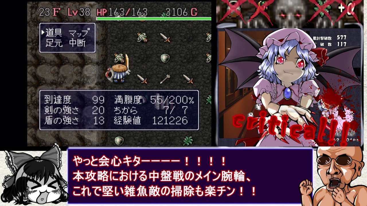 <span style="color: #00ff00; font-size: 24px;"><strong>トド虐待おじさん</strong></span><br>(場面は通路から調教部屋へ。部屋に入るなり、トドを手加減タックルで弾き飛ばす)<br>「よし…今日は逆さ吊り、鞭攻めをしよう(提案)」<br>今日もどこかでトドは狩られ続けるゲームの実況解説part8-1<br><br>※大画面推奨<br><br>22階開幕~23階終了まで<br>※内容に過剰な演出と汚いホモ(直球)が含まれます。嫌いな方はこちら<br><a href="https://www.youtube.com/watch?v=m22l-MVo1gA" target="_blank" rel="noopener nofollow">https://www.youtube.com/watch?v=m22l-MVo1gA</a><br><br>縛り内容<br>・壺:入れる、投げる、押す、中身吸い出し<br>・杖:振る、投げる<br>・草:飲む、投げる<br>・モンスターのジェノサイド<br>・透視の腕輪の装備<br>・復活(鬼面武者系の肉の効果含む)<br>・店での売買、値段識別<br><br>フォローすると動画の進捗状況がよく分かる(分かるとは言っていない)ツイ垢もオナシャス!!@monokuro_Gunma <br><br>前:<a href="https://www.nicovideo.jp/watch/sm37303803" class="watch">sm37303803</a> 次:<a href="https://www.nicovideo.jp/watch/sm39508317" class="watch">sm39508317</a><br><span style="color: #000000;">マイリスト<a href="https://www.nicovideo.jp/mylist/54334557" target="_blank" rel="noopener">mylist/54334557</a> </span>ガマラ検証:<a href="https://www.nicovideo.jp/watch/sm32503158" class="watch">sm32503158</a>